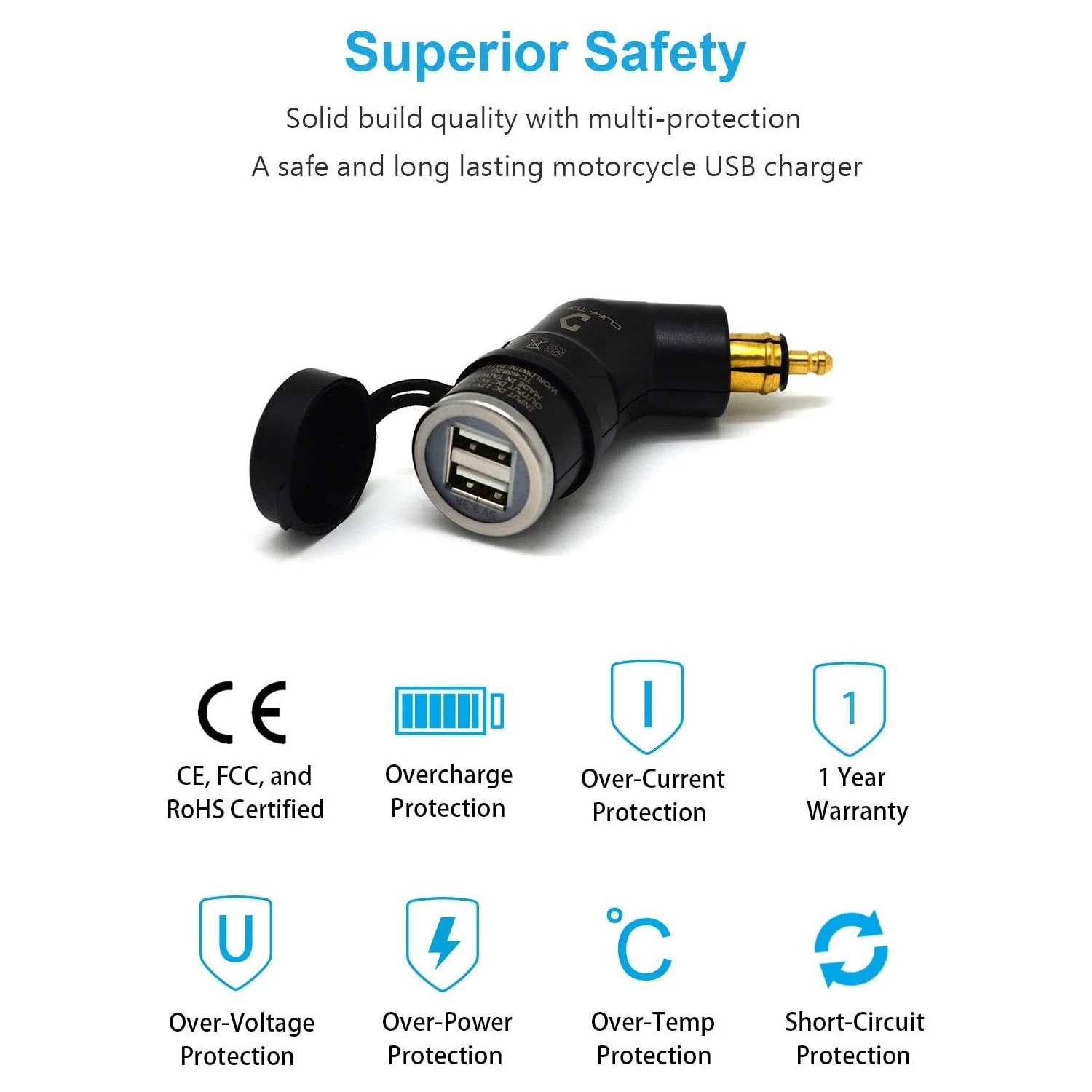 Notre Chargeur se branchant dans une moto de la marque Cliff Top DIN (Hella) a un design sobre et efficace permettant de recharger 2 téléphones portables à une vitesse maximum de 3.3 ampères totale ❤️.