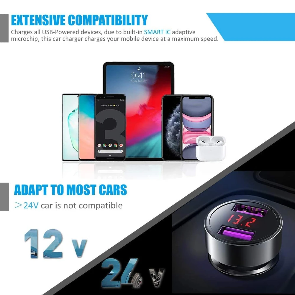 Ce chargeur allume cigare est conçu pour être compatible avec tous les appareils mobiles Android et iOS. Que vous possédiez un iPhone, Samsung, Xiaomi, ou encore des tablettes et montres de sport, notre chargeur fournit la vitesse de charge optimale pour chaque appareil, assurant ainsi une recharge efficace et rapide.