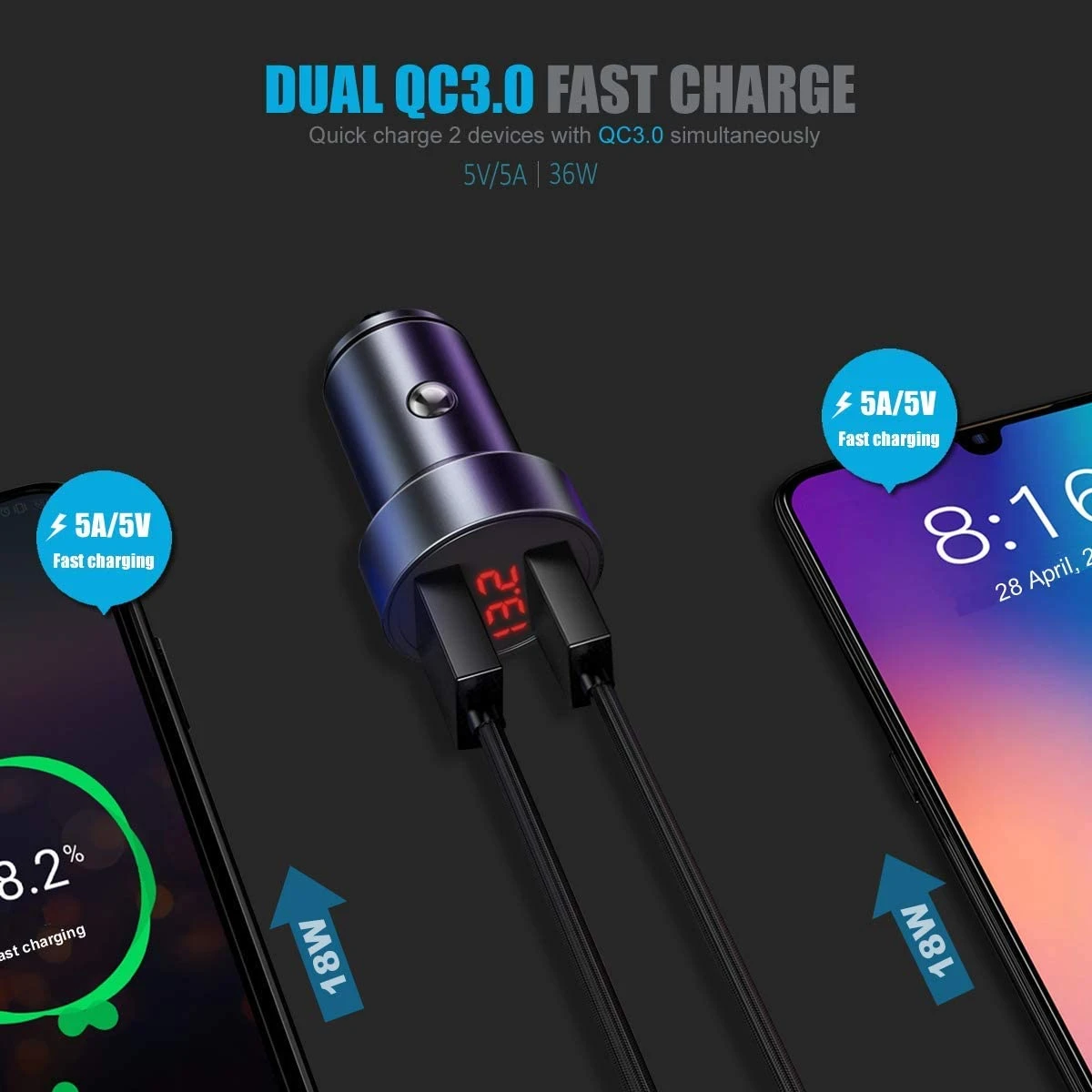 Notre chargeur allume cigare est équipé de deux ports USB compatibles avec la technologie Quick Charge 3.0, offrant une puissance de 36W pour une recharge ultra-rapide. Il peut charger simultanément deux appareils, allant de 0 à 55 % en seulement 35 minutes. Vous bénéficiez ainsi d’une vitesse de charge 4x plus rapide par rapport aux chargeurs classiques, idéal pour recharger vos smartphones et autres appareils électroniques pendant vos déplacements.