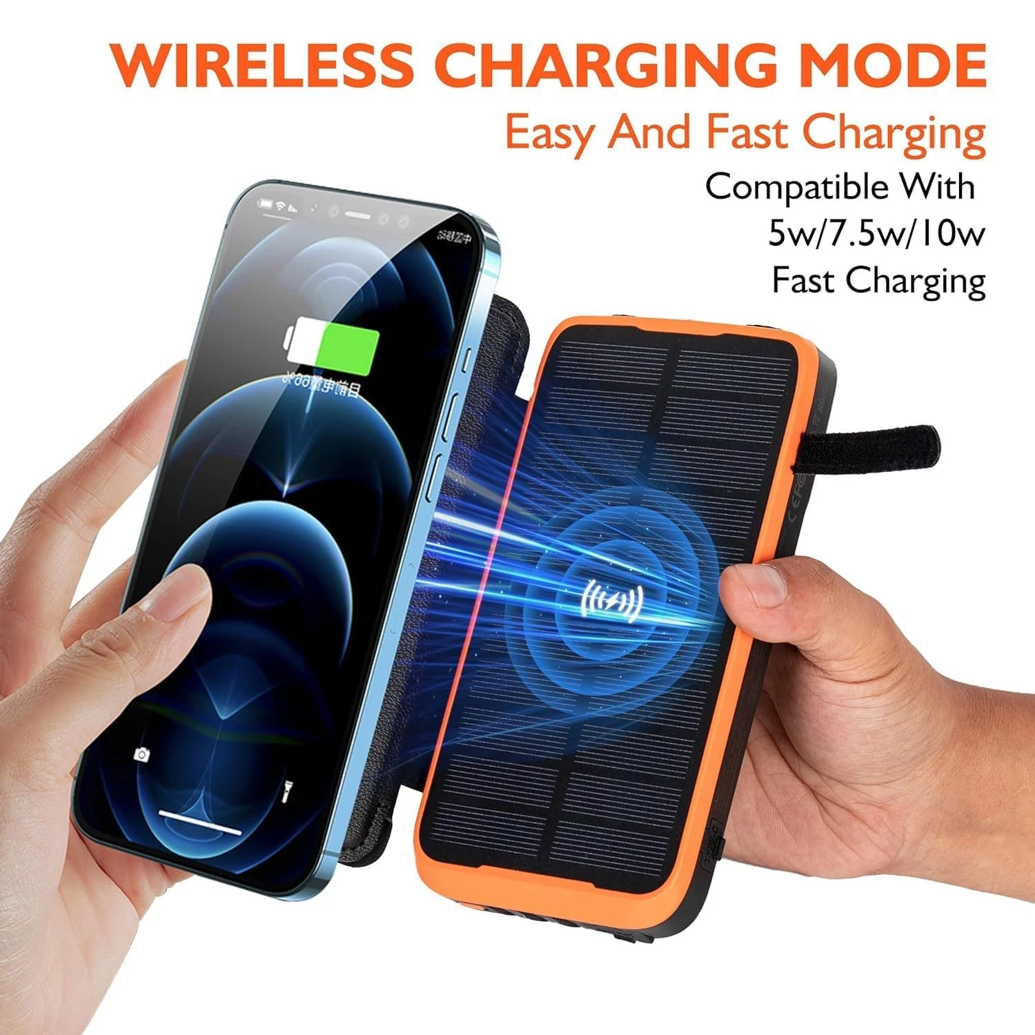 Notre chargeur est équipé d’une batterie lithium-polymère de 30 000 mAh, offrant une durée de vie prolongée et une capacité à charger plusieurs fois vos appareils. Elle est compacte et légère, de la taille d’un smartphone, idéale pour être transportée facilement lors de vos activités extérieures comme le camping ou les randonnées.