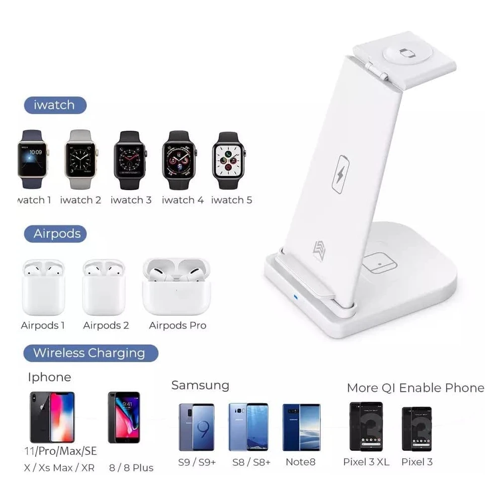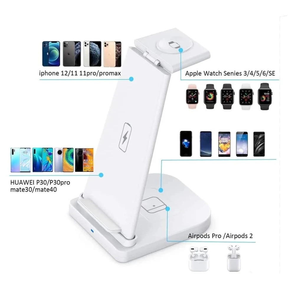 Découvrez notre chargeur induction 3 en 1 révolutionnaire, conçu pour simplifier la recharge de vos appareils. Ce support multifonctionnel vous permet de recharger votre iPhone, Apple Watch et AirPods en même temps grâce à sa technologie sans fil Qi. Profitez de la commodité d’une station de charge élégante, adaptée à votre quotidien, et de la performance de charge rapide dans un design moderne.