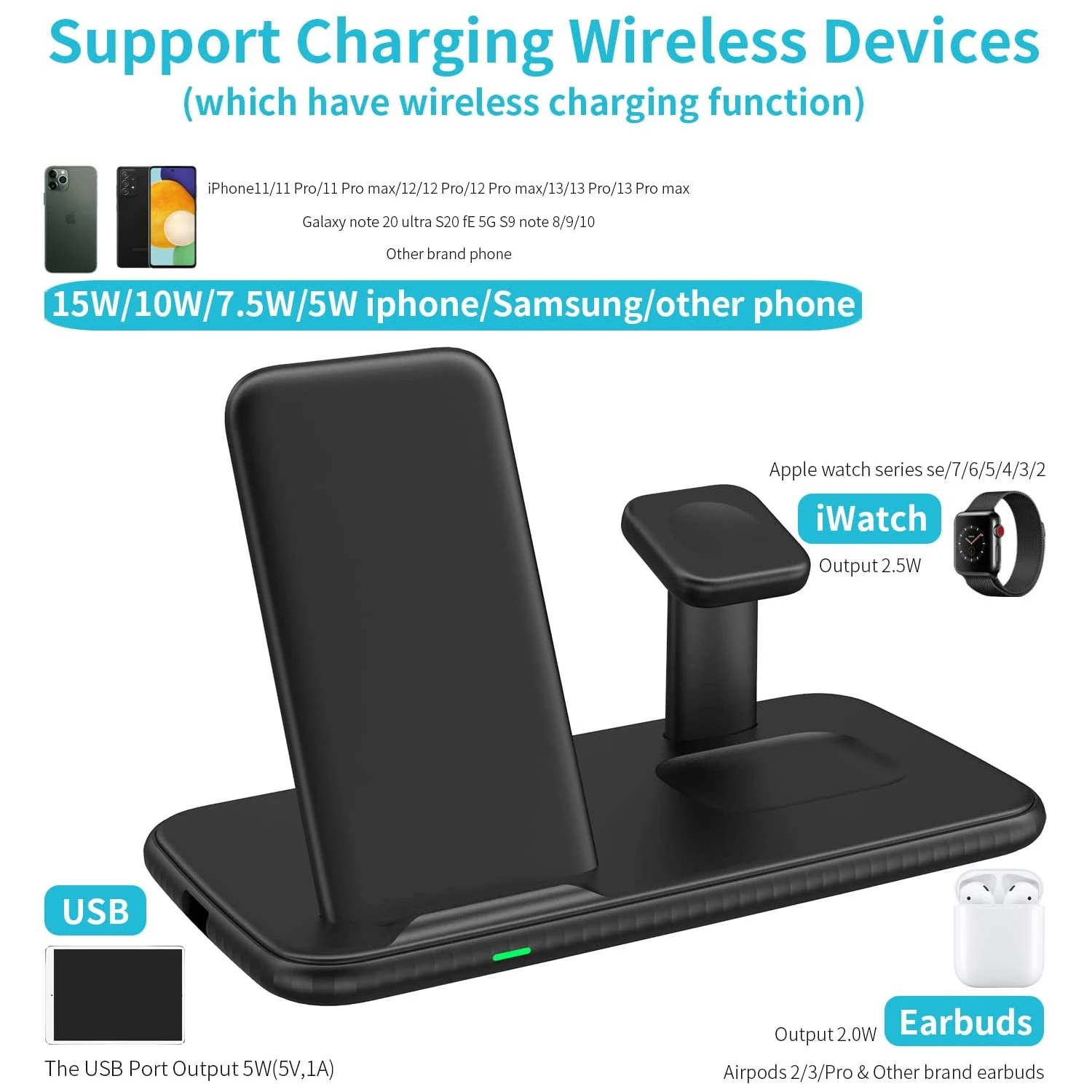 Notre Chargeur sans fil 4 en 1 peut recharger jusqu’à 4 appareils en même temps : Un smartphone, une montre connectée et des écouteurs sans fil en induction, puis un dernier en filaire grâce à son port de sortie USB-A ❤️. Confiant de la qualité de nos produits, une garantie de 3 ans vous protège contre tout incident possible ✅.