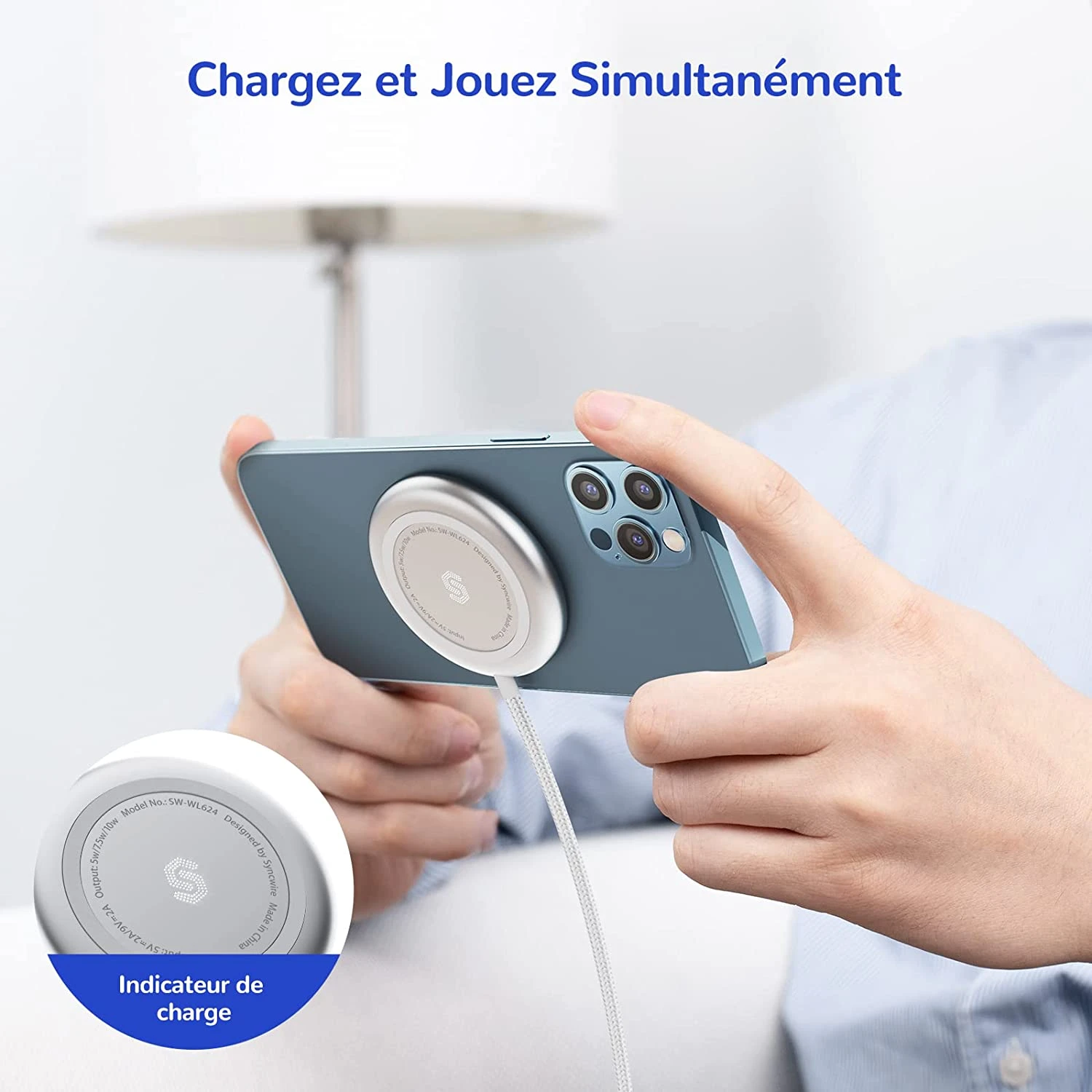 Notre chargeur à induction est conçu pour s’associer parfaitement aux modèles iPhone 12 et 13 ainsi qu’aux AirPods 2, 3 et Pro. Il offre une puissance de charge rapide allant jusqu’à 7,5 W, garantissant une recharge efficace pour vos appareils Apple. Profitez d’une compatibilité universelle qui simplifie votre quotidien.