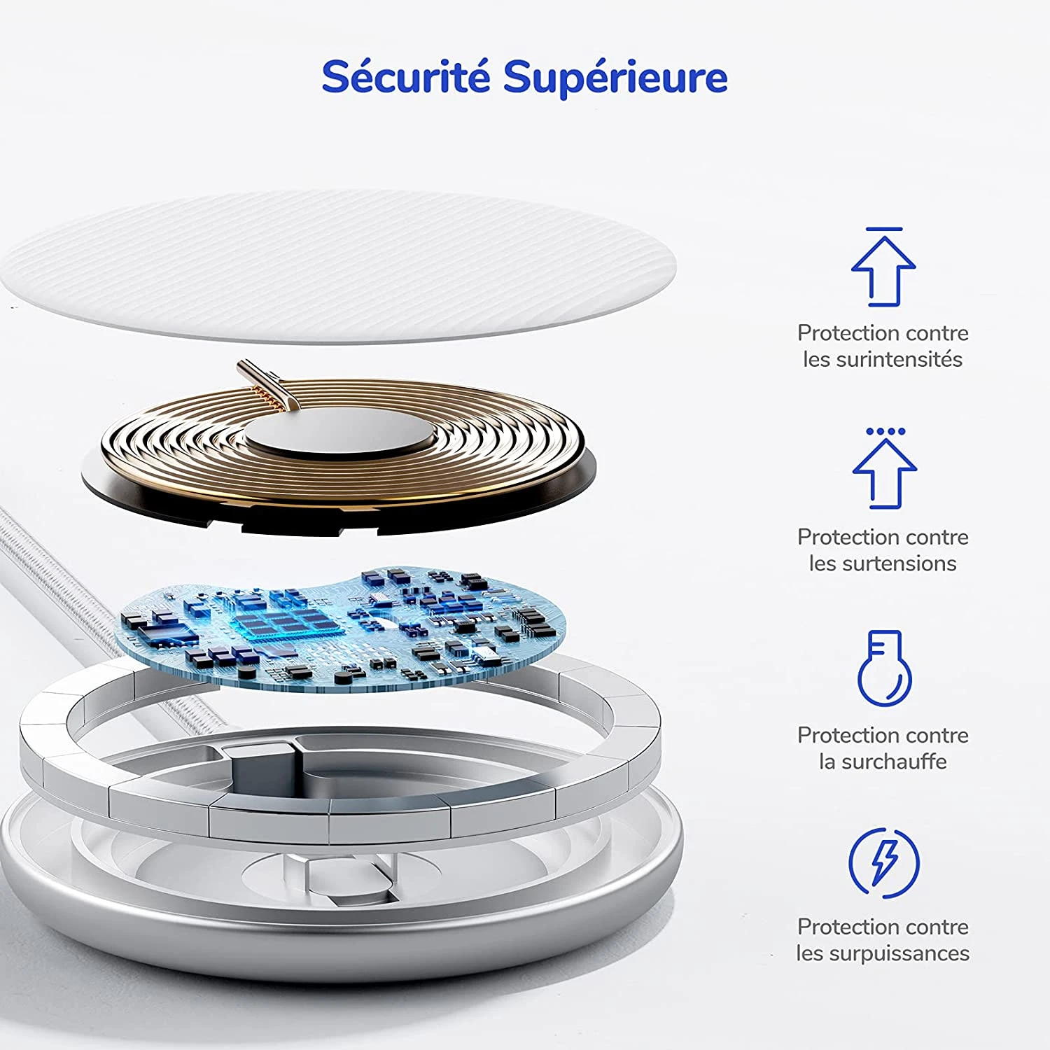 En résumé, notre chargeur à induction allie rapidité, durabilité et sécurité pour une recharge sans fil efficace et pratique. Ajoutez-le à votre quotidien pour simplifier vos recharges tout en garantissant la protection de vos appareils.