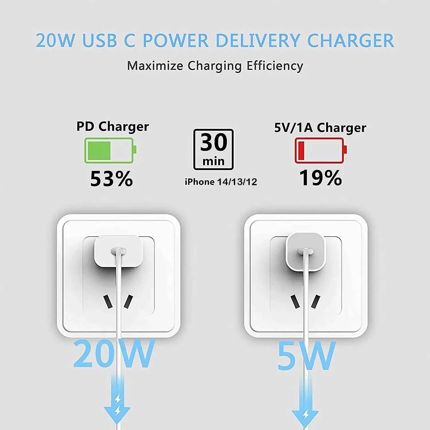 Avec le port USB C PD 3.0 Quick-Charge, notre chargeur peut fournir une puissance de sortie maximale de 20 W, permettant de charger votre iPhone 14 jusqu’à 50% en seulement 30 minutes. Cette technologie innovante vous fait gagner plus d’1,5 heure de temps de charge par rapport aux chargeurs standard.