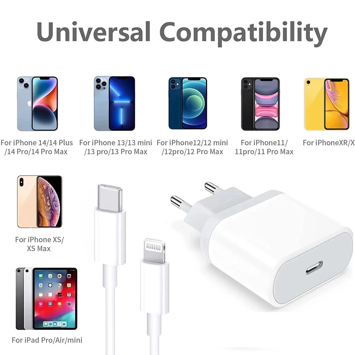 Notre chargeur est spécialement conçu pour les appareils Apple. Utilisez le câble Lightning officiel pour iPhone 13/12 en combinaison avec notre chargeur mural USB C de 20 W pour accéder à la charge rapide pour une gamme d’appareils, y compris l’iPhone 14, 13, 12, SE 2020, ainsi que les modèles précédents tels que l’iPhone 11, XS, XR, X et plus encore. Même les appareils comme les iPad, iPad Pro, iPad Mini et iPad Air peuvent bénéficier de la charge rapide 😊.