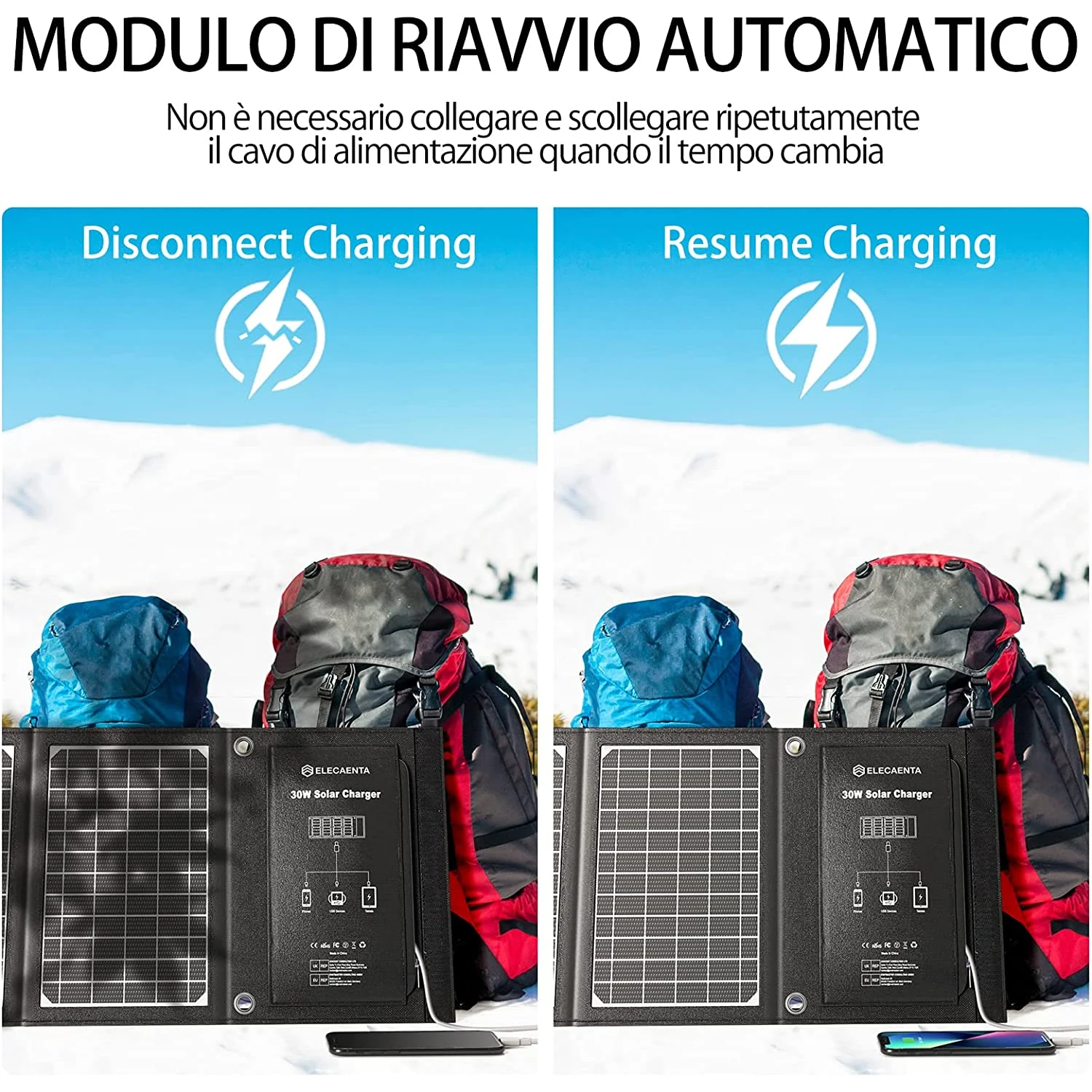 Chargeur Solaire Rapide de 30 watts pour excursions, voyage,…