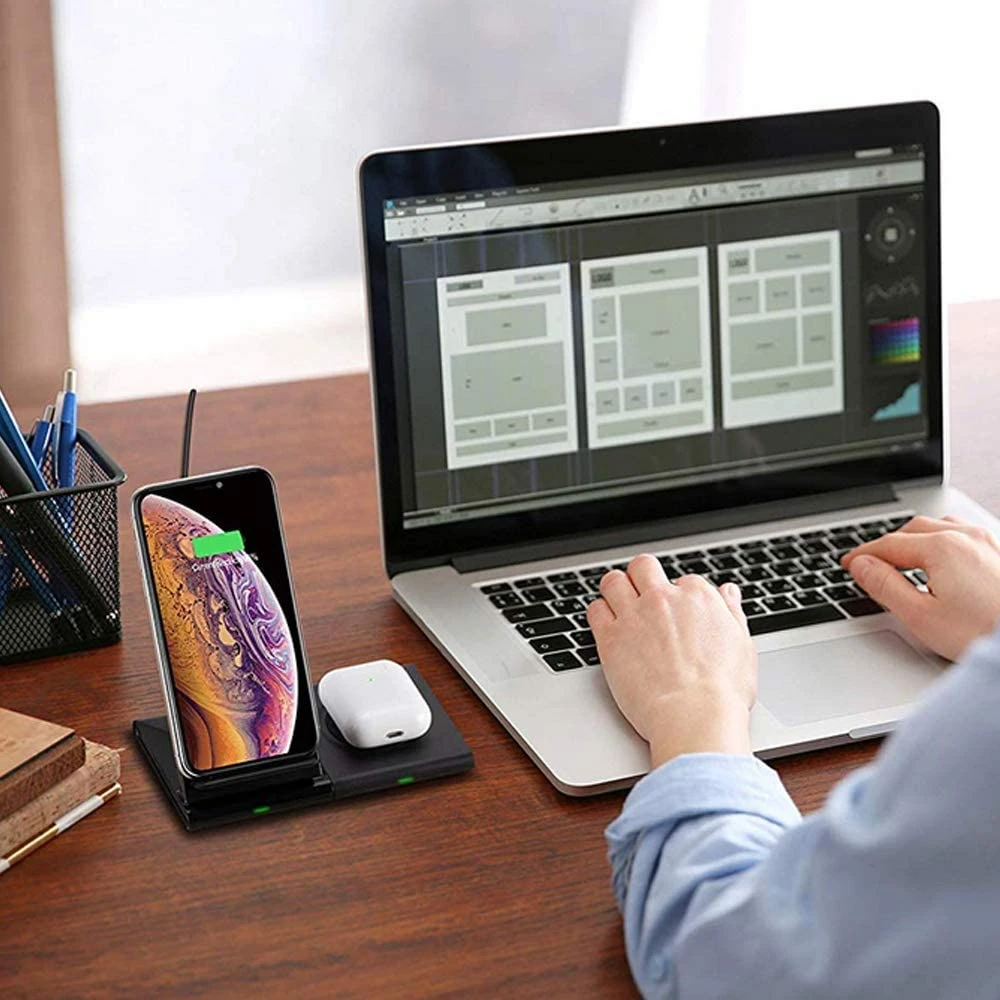 Notre Chargeur à induction 2 en 1 est réfléchi pour recharger jusqu’à 2 appareils simultanément. Son double support de charge Qi est parfait si vous avez un autre appareil sans fil à recharger que votre smartphone ❤️. Confiant de la qualité de nos produits, une garantie de 3 ans vous protège contre tout incident possible ✅.