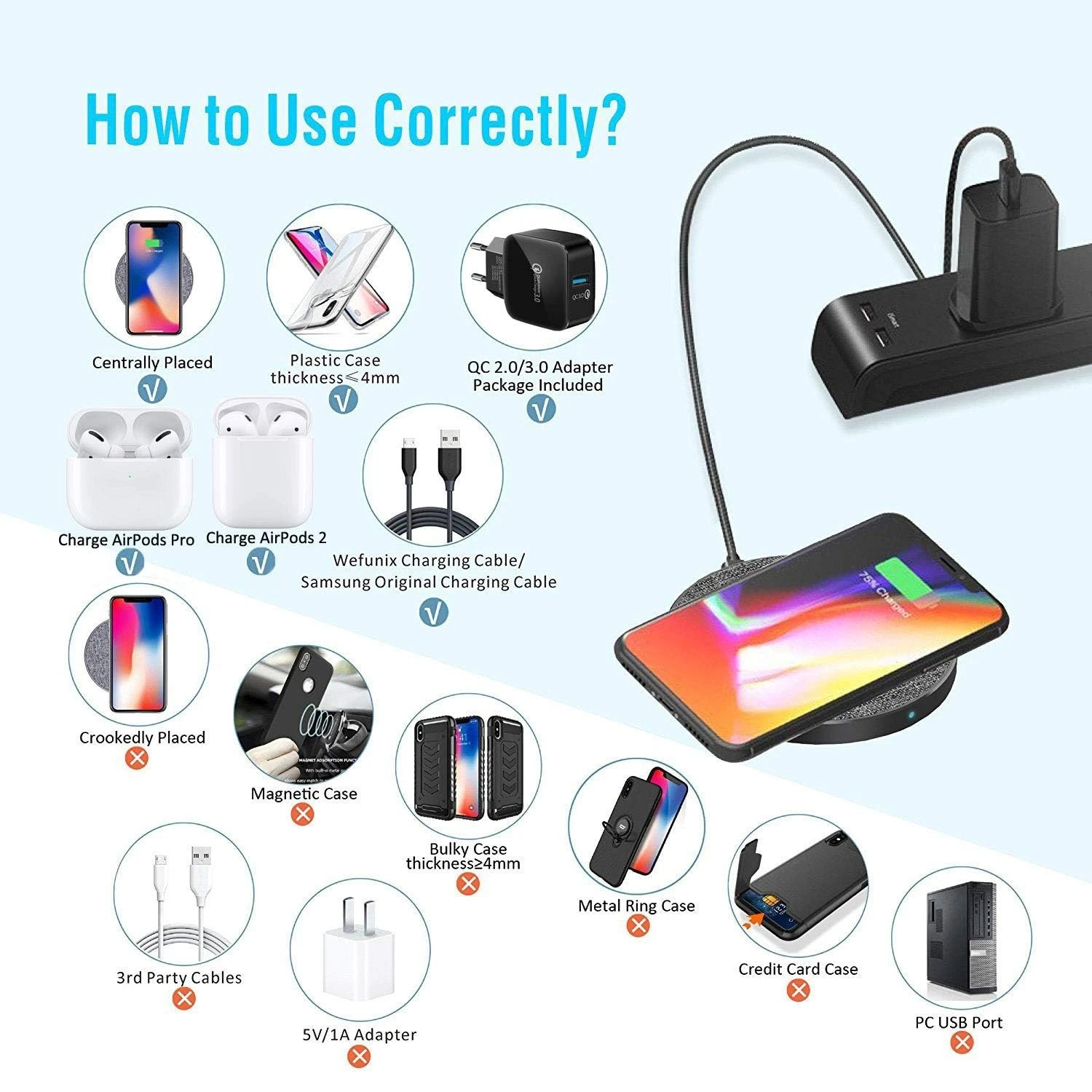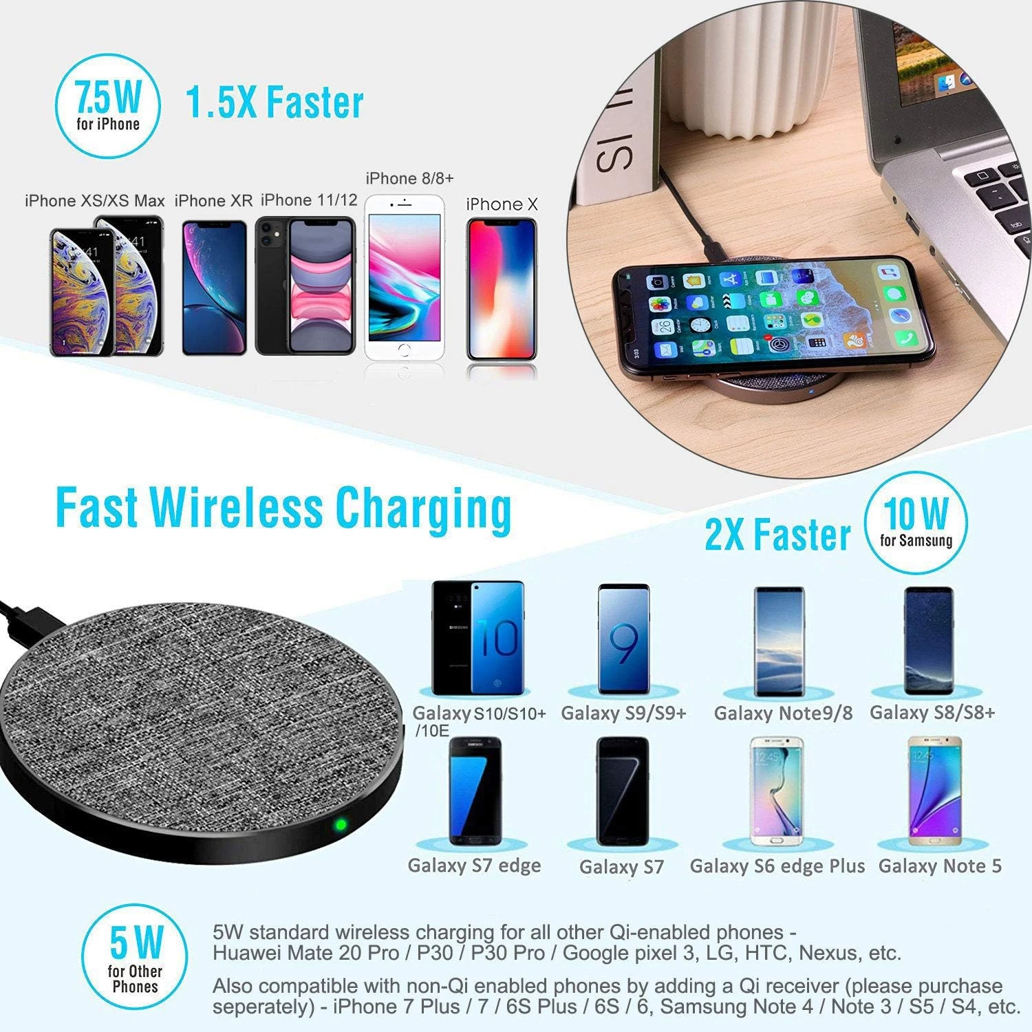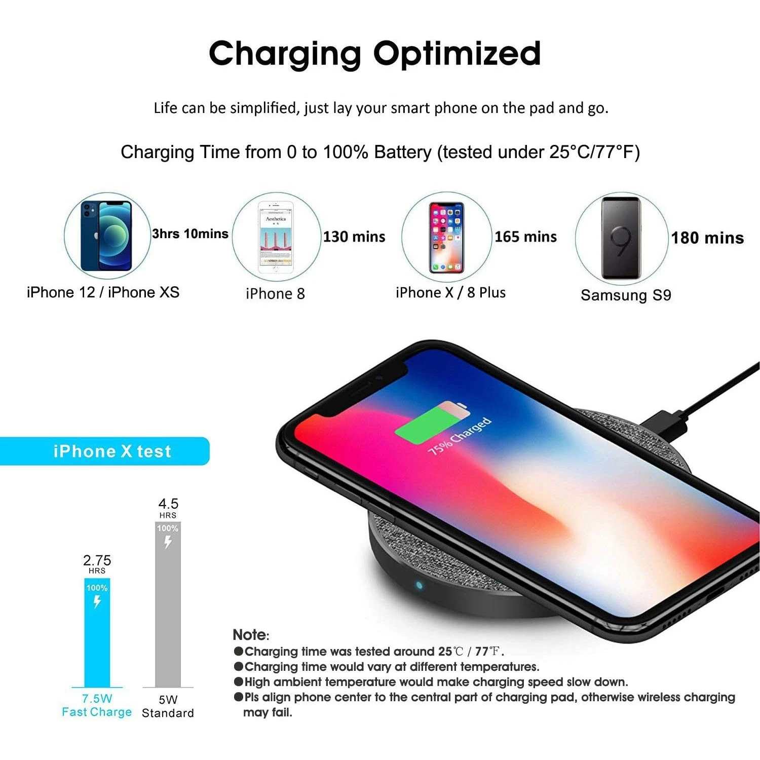 Avec sa technologie de pointe, notre chargeur offre une puissance adaptable allant de 7,5W à 15W, idéale pour les appareils Apple, Samsung, Huawei, et bien d’autres. Grâce à l’adaptateur QC3.0 inclus, vous bénéficiez d’une charge rapide optimisée, sans compromettre la durée de vie de votre batterie.