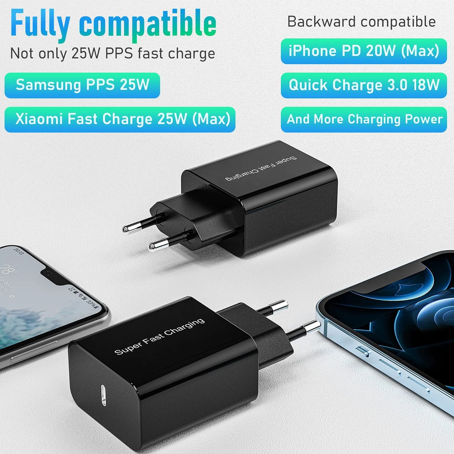 Notre Chargeur Secteur rapide SFC (Super Fast Charging) dispose d’un port USB Type-C de 25 watts supportant la technologie récente Power Delivery 3.0 et Samsung PPS permettant de recharger très vite Android ou iPhone ❤️.