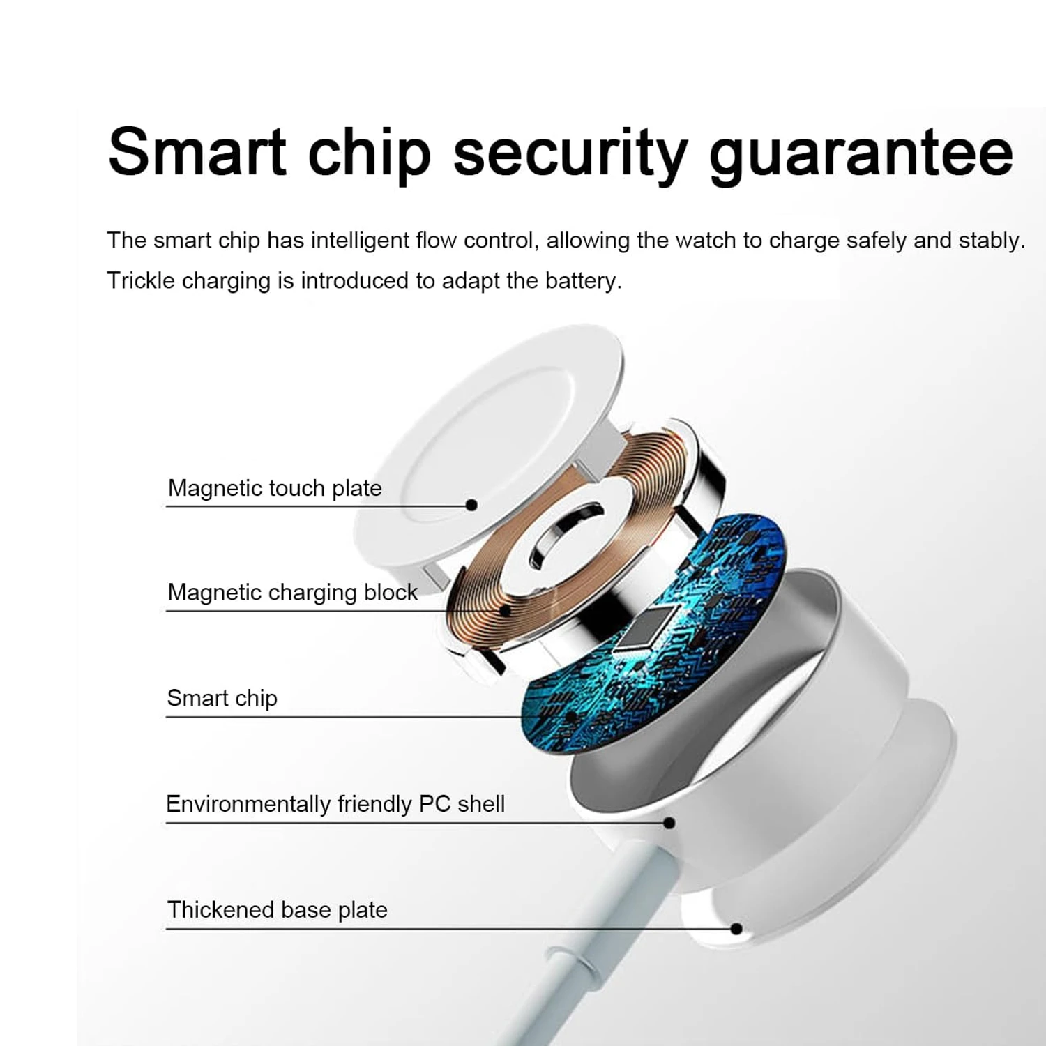 Nous avons mis l’accent sur la qualité et la sécurité. Notre chargeur de montre est équipé de protections intégrées contre la surintensité, la surtension, les courts-circuits et la surchauffe, garantissant ainsi la sécurité de la batterie de votre appareil. Le câble de charge est fabriqué à partir de matériaux de haute qualité pour une connexion stable et des performances de charge exceptionnelles. Sa durabilité est assurée par des tests de flexion fiables, garantissant une durée de vie prolongée.