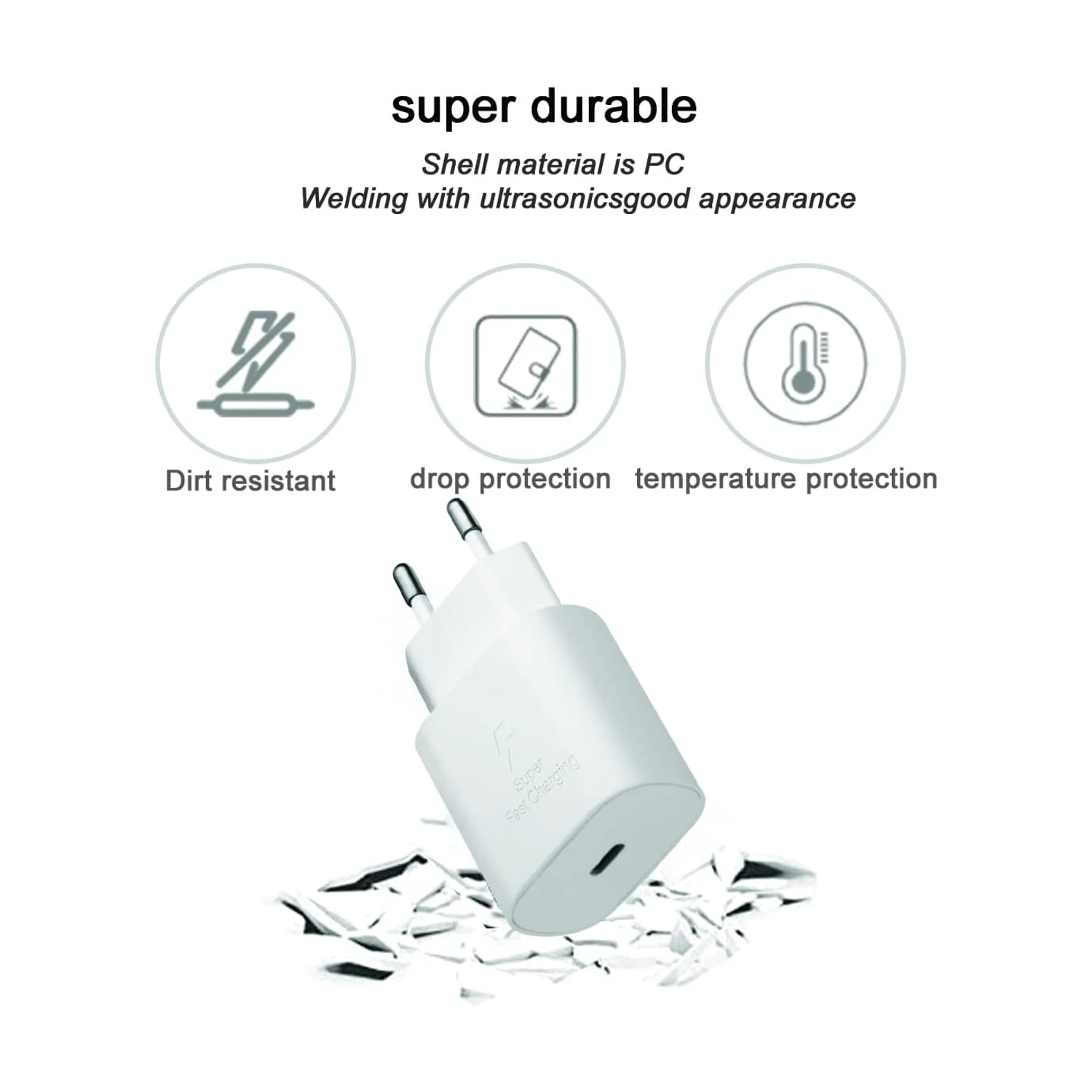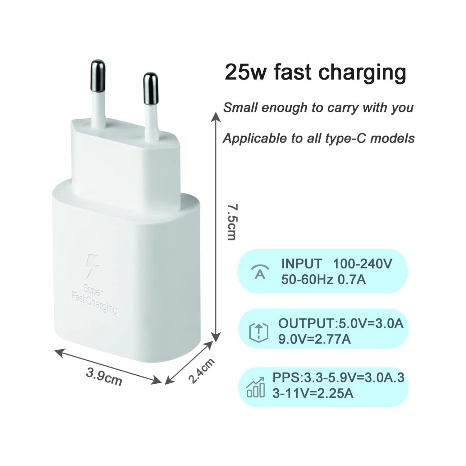 Découvrez notre Chargeur USB-C, conçu pour offrir une charge rapide et efficace à votre appareil. Grâce à la technologie PD, notre chargeur rapide USB C 25 W est le partenaire idéal pour vos appareils Galaxy. Il peut charger votre Galaxy S20 FE, S21, S21 Plus, S21 Ultra, S21 FE 5G, Galaxy S22, Galaxy Z Fold3 5G jusqu’à 60 % en seulement 30 minutes, soit 70 % plus rapidement qu’un chargeur 5W d’origine.