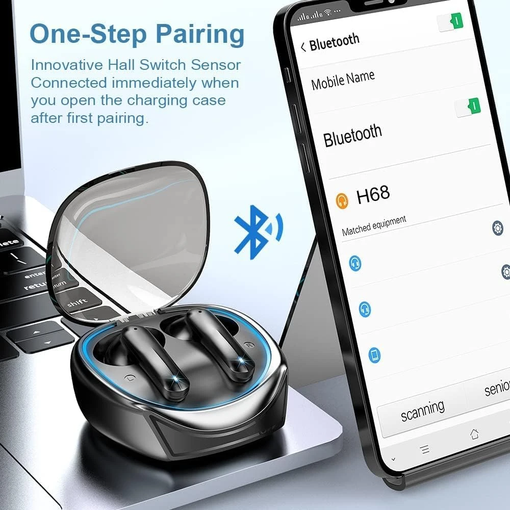 🔗 Bluetooth 5.3 et Appairage en une étape : Nos Véritables Écouteurs Bluetooth adoptent la nouvelle technologie Bluetooth 5.3 pour une transmission stable et une consommation d’énergie réduite. Ouvrez simplement le boîtier de charge du casque H68 pour une connexion automatique après le premier appairage.