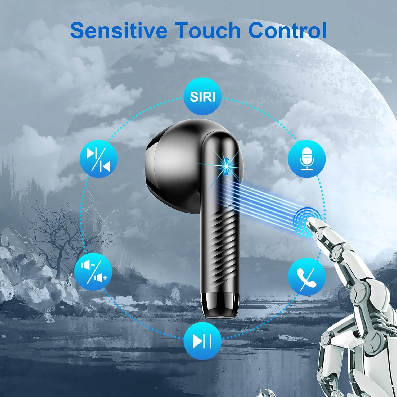 🔄 Compatibilité Étendue et Contrôle Tactile : Grâce à la technologie Bluetooth 5.3 avancée, les écouteurs sont compatibles avec une gamme étendue d’appareils. La fonction de contrôle tactile intuitif vous permet de gérer facilement la musique, les appels et l’assistant vocal.