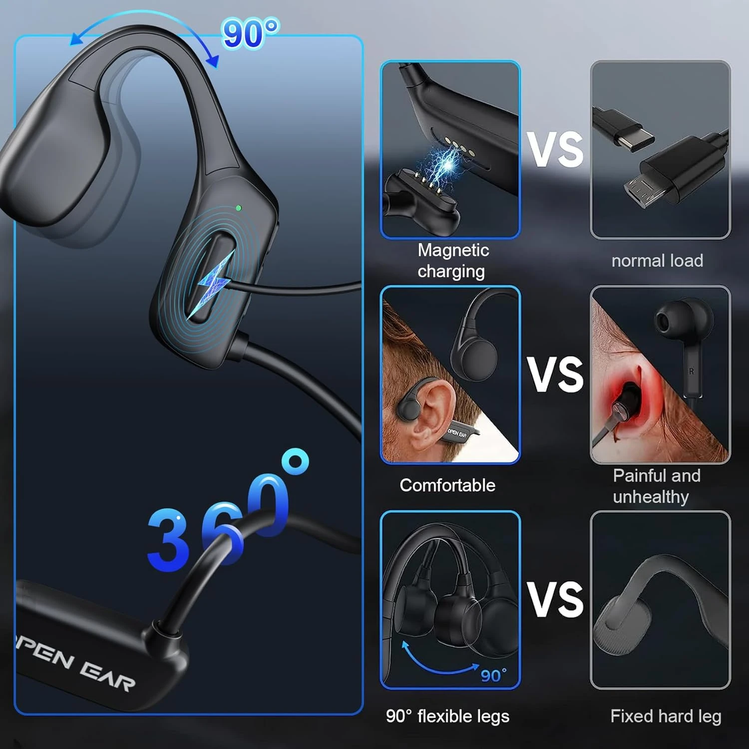 🎵 Sécurité Ouverte : Nos écouteurs sans fil à casque à conduction osseuse adoptent un design ouvert, vous n’avez donc pas besoin de les insérer dans votre oreille. Ces écouteurs Bluetooth ouverts offrent un son de haute qualité à travers vos pommettes, vous permettant de rester connecté et conscient de votre environnement. 🌳