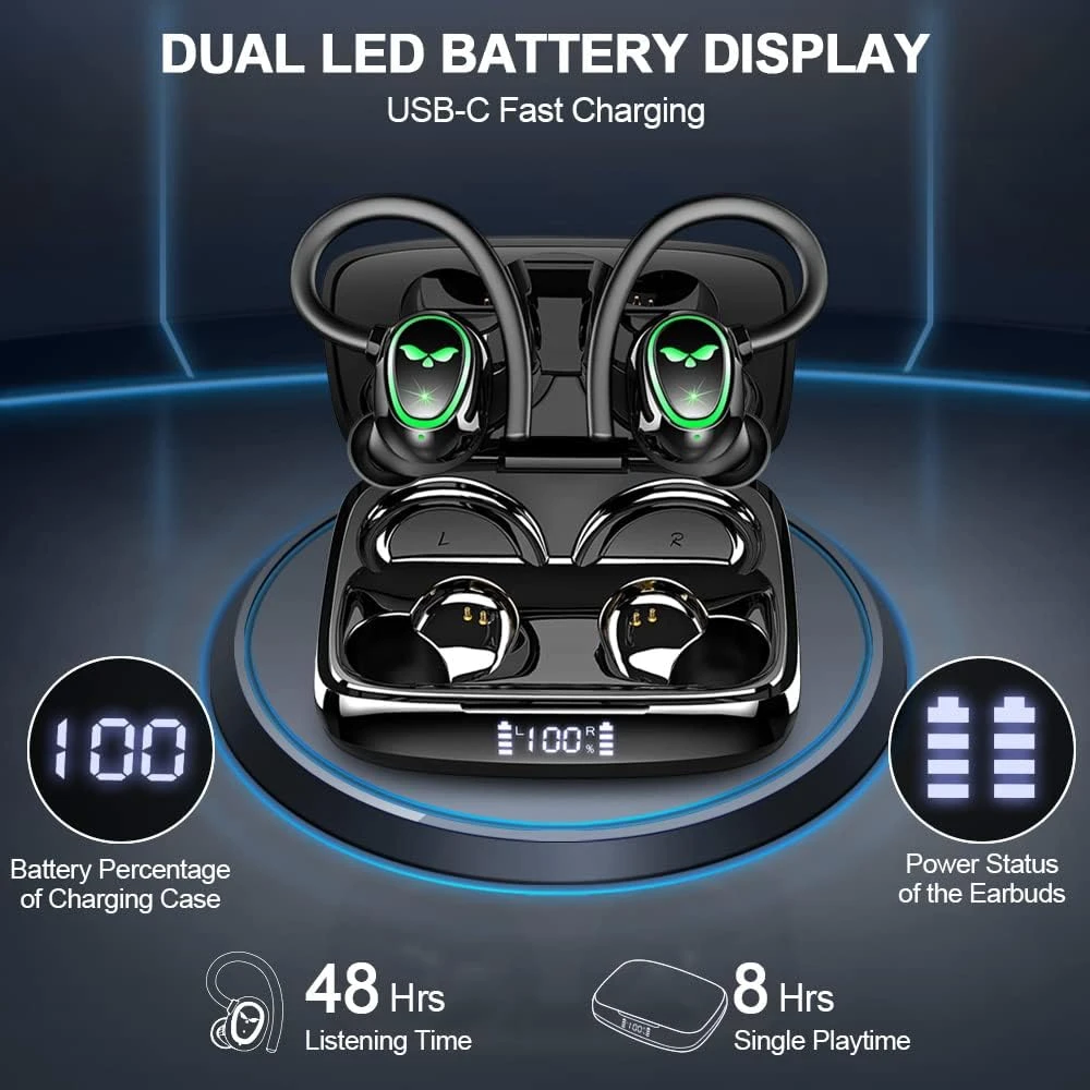 Dual Écran LED et 48H de Lecture 🔋 : Les écouteurs sans fil offrent jusqu’à 8 heures de lecture sur une seule charge, et le boîtier de charge vous permet de profiter de 48 heures de lecture au total. La charge rapide via USB-C ne prend que 1,5 heure. L’affichage LED numérique vous permet de vérifier facilement le niveau de charge.