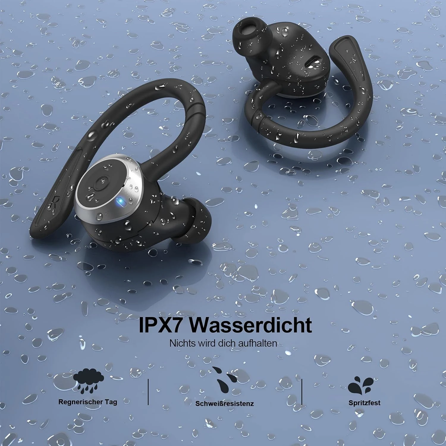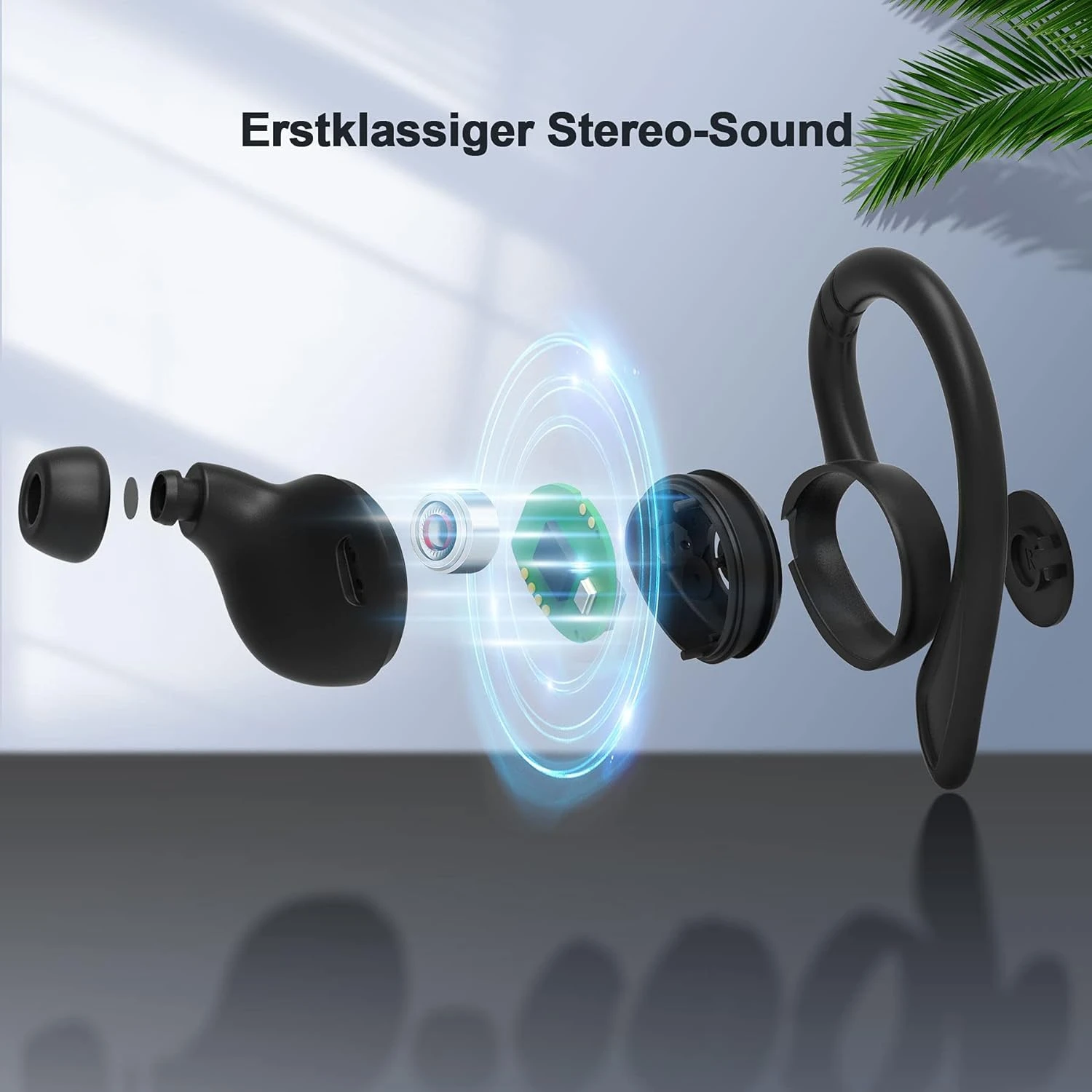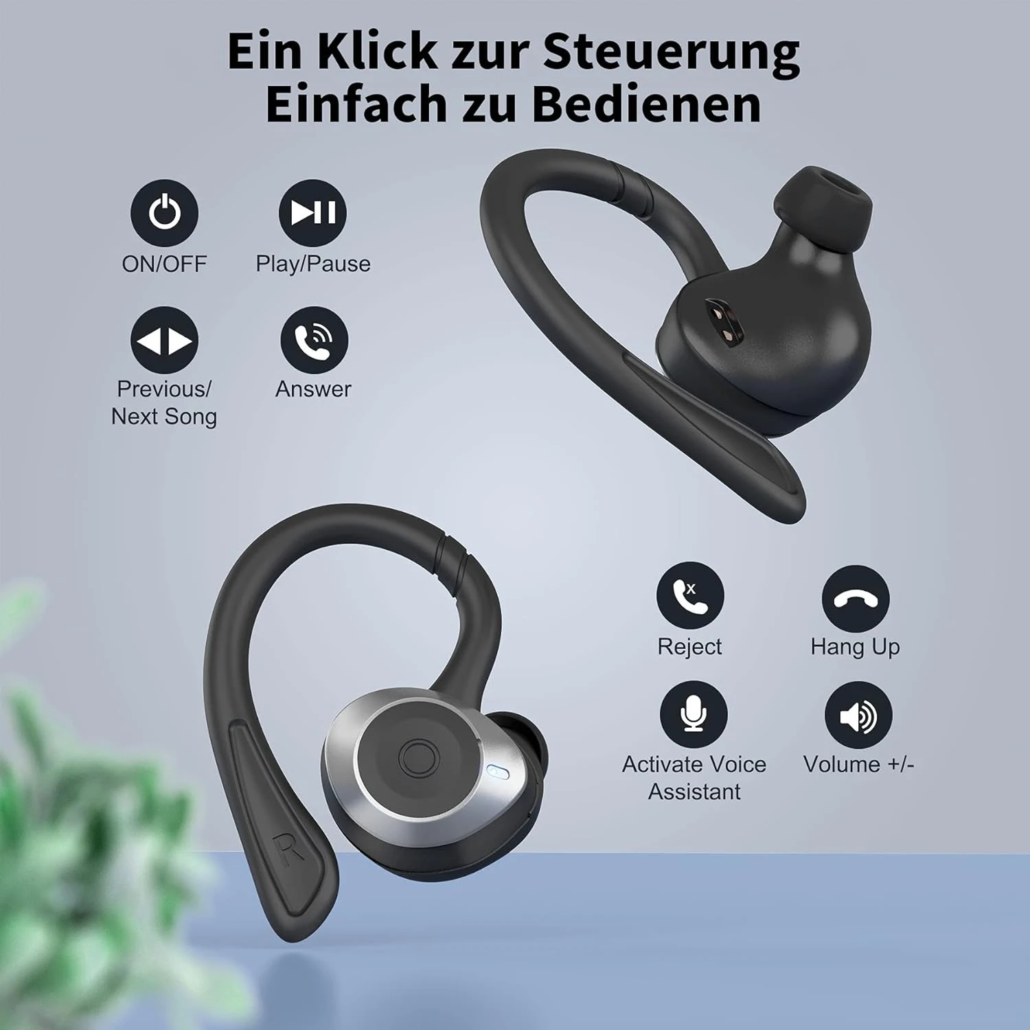 Design ergonomique et confortable : Nos écouteurs sans fil sont dotés de crochets d’oreille souples qui s’adaptent parfaitement à vos contours d’oreille, garantissant un ajustement sécurisé et un confort maximal. Même pendant vos courses les plus intenses, ils ne tomberont pas. De plus, leur conception étanche IPX7 les protège de la transpiration et des intempéries, vous permettant de profiter de la musique par tous les temps. Plus de soucis concernant les interruptions involontaires grâce à notre système de commande par bouton. 🏃♂️🎧
