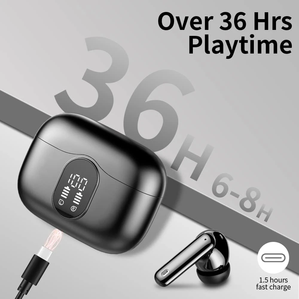 🔋 Batterie Longue Durée et Écran LED : Une charge complète des écouteurs offre de 6 à 8 heures de lecture, et le boîtier de recharge assure 30 heures supplémentaires. L’écran LED sur l’étui permet de surveiller facilement le niveau de batterie et l’état de charge. Profitez de la musique sans interruption tout au long de la journée.