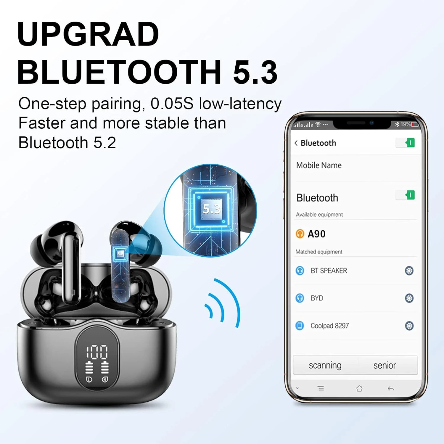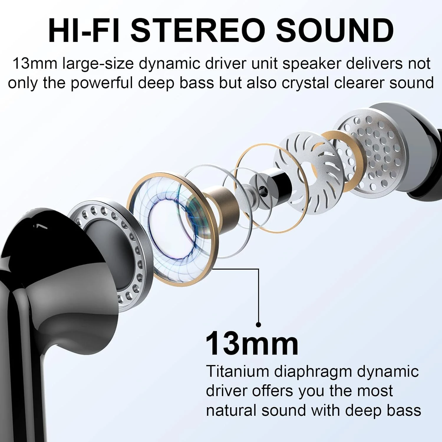 Qualité Sonore Hi-Fi + Appels Clairs 🎶 : Nos écouteurs sont équipés d’une puce audio de haute qualité pour un son stéréo de grande qualité et des basses puissantes. La faible latence les rend parfaits pour les jeux et la vidéo. Les microphones à technologie de réduction du bruit bloquent les distractions sonores pour des appels clairs, même dans des environnements bruyants.
