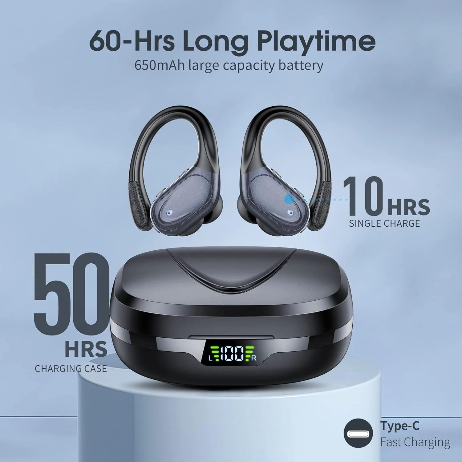 60 Heures de Lecture et Affichage LED de la Puissance : Nos écouteurs vous offrent jusqu’à 10 heures de lecture avec une seule charge, et jusqu’à 60 heures au total en utilisant le boîtier de charge. Un écran LED externe vous indique le niveau de charge restant dans le boîtier de recharge, vous permettant de suivre facilement l’autonomie. 🕒🔋
