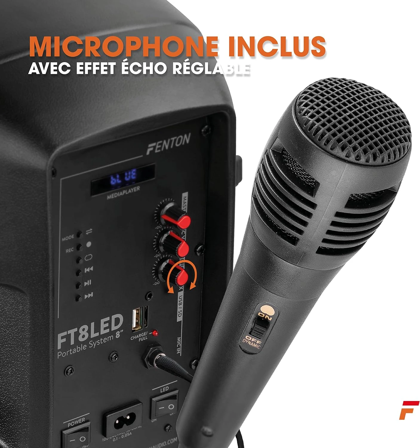 Enceinte sono portable batterie 🎶 : Profitez de la portabilité ultime avec notre enceinte sono portable FT8LED. Son design compact, associé à une poignée télescopique pratique et à une batterie intégrée, vous permet de l’emporter partout, que ce soit en extérieur, à la plage, lors de pique-niques ou de fêtes entre amis. Plus besoin de vous soucier des prises électriques.