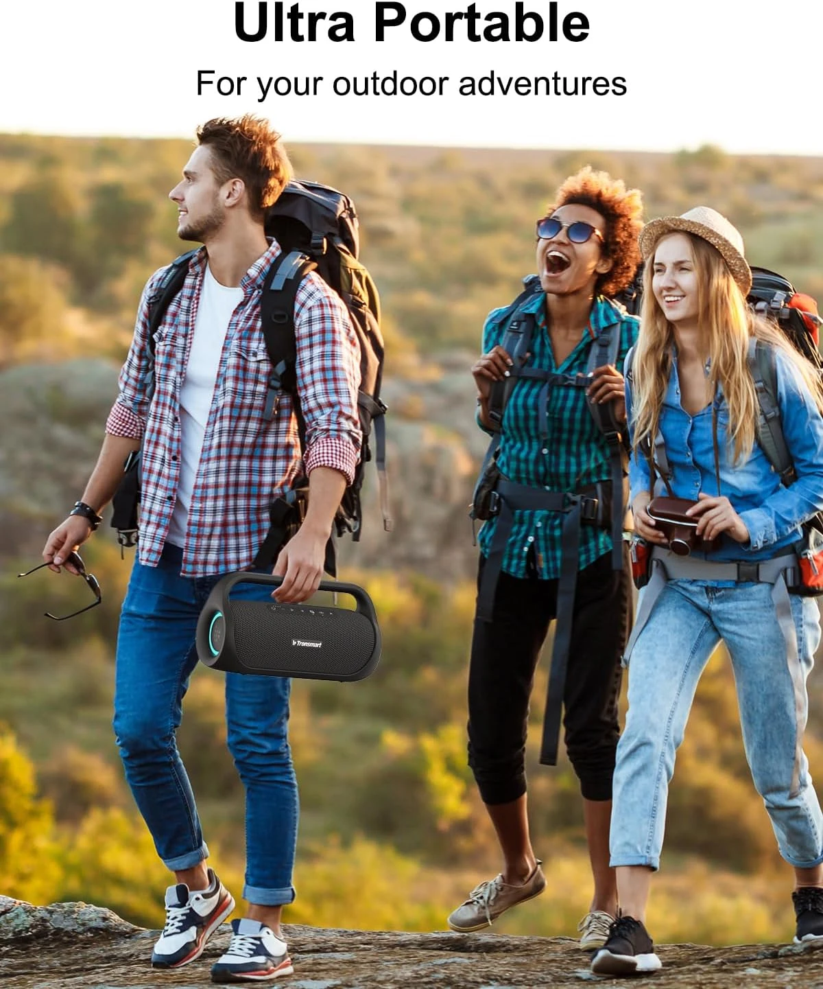 🌧️ Étanche IPX6 : Notre enceinte Bluetooth est dotée d’un design élégant et moderne, avec des bords arrondis pour une touche premium. Elle est par ailleurs certifiée étanche IPX6, ce qui la rend résistante aux déversements, à la pluie et aux éclaboussures. Grâce à sa poignée intégrée, elle est facilement transportable, pesant seulement 2,37 kilogrammes.
