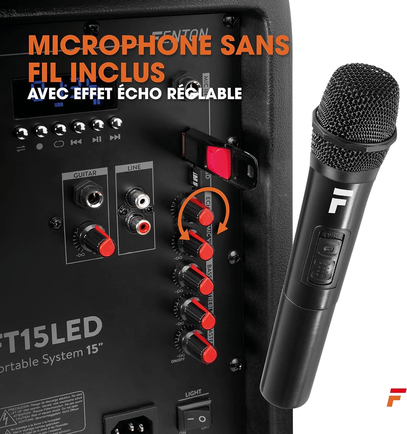 Fonction Karaoké intégrée 🎤 : Notre enceinte est équipée d’une entrée micro avec réglage de volume et d’effets d’écho, idéale pour des sessions karaoké amusantes et interactives lors de vos soirées.