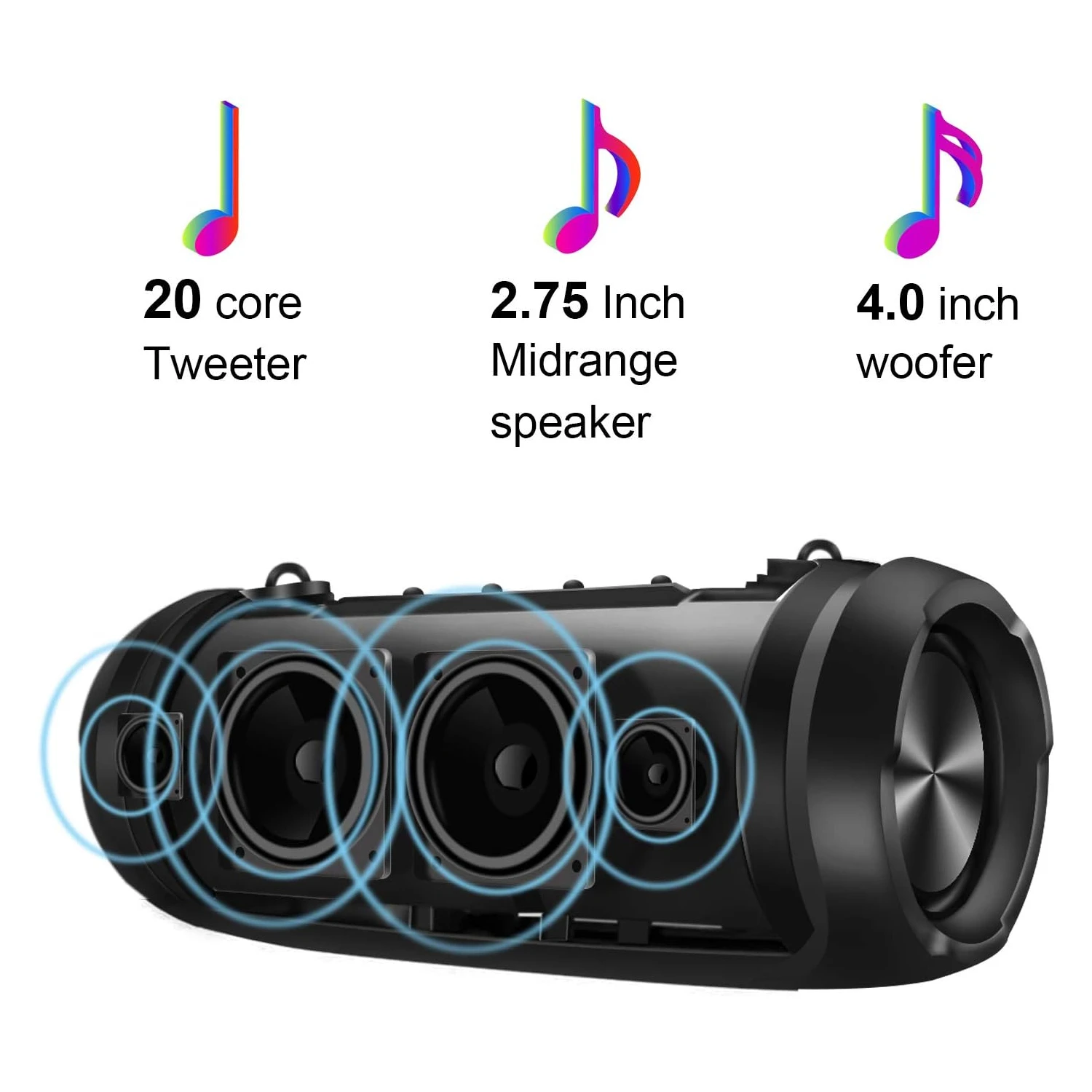 🎒 Étanchéité IPX6 et Portable : L’enceinte est dotée d’une protection IPX6 contre la pluie et la neige, et son extérieur est recouvert d’une élégante tresse en maille. Vous pouvez l’accrocher à un sac à dos ou à un vélo grâce au mousqueton inclus, ce qui en fait un compagnon idéal pour les déplacements.