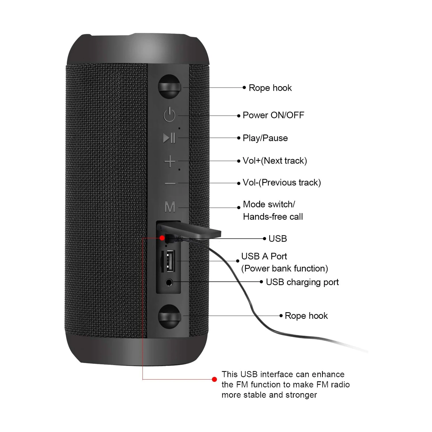 🔗 Technologie Son Surround 360° : Adoptant la dernière technologie stéréo, notre enceinte Bluetooth M2-Pro peut être couplée avec une autre unité pour créer un effet de son surround 360° immersif. De plus, elle prend en charge divers modes de lecture, notamment USB, carte TF et câble AUX, avec un micro intégré pour des appels clairs.
