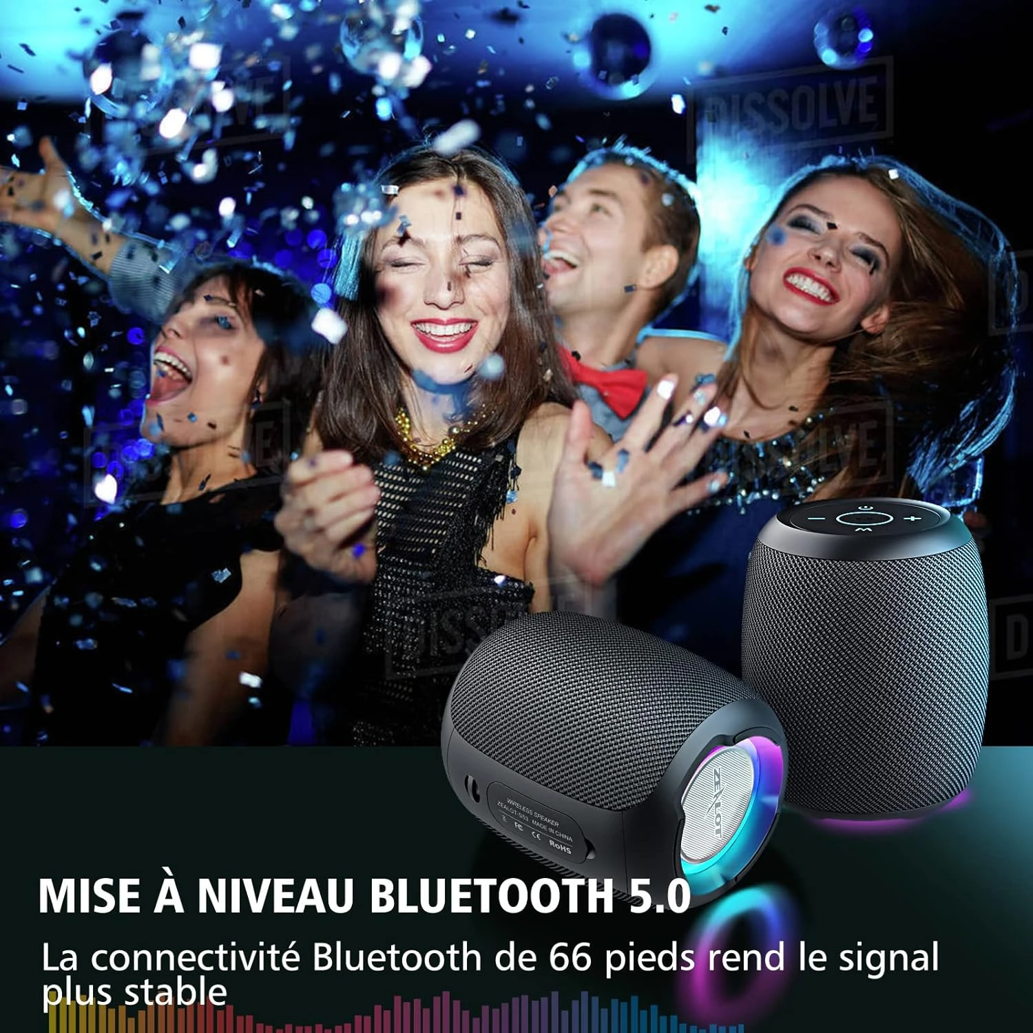 Lumières Dansantes avec la Musique 🎉 : Les lumières de l’enceinte dansent au rythme de la musique, créant une atmosphère festive. Les lumières colorées sont parfaites pour animer vos réunions entre amis et les anniversaires en famille.