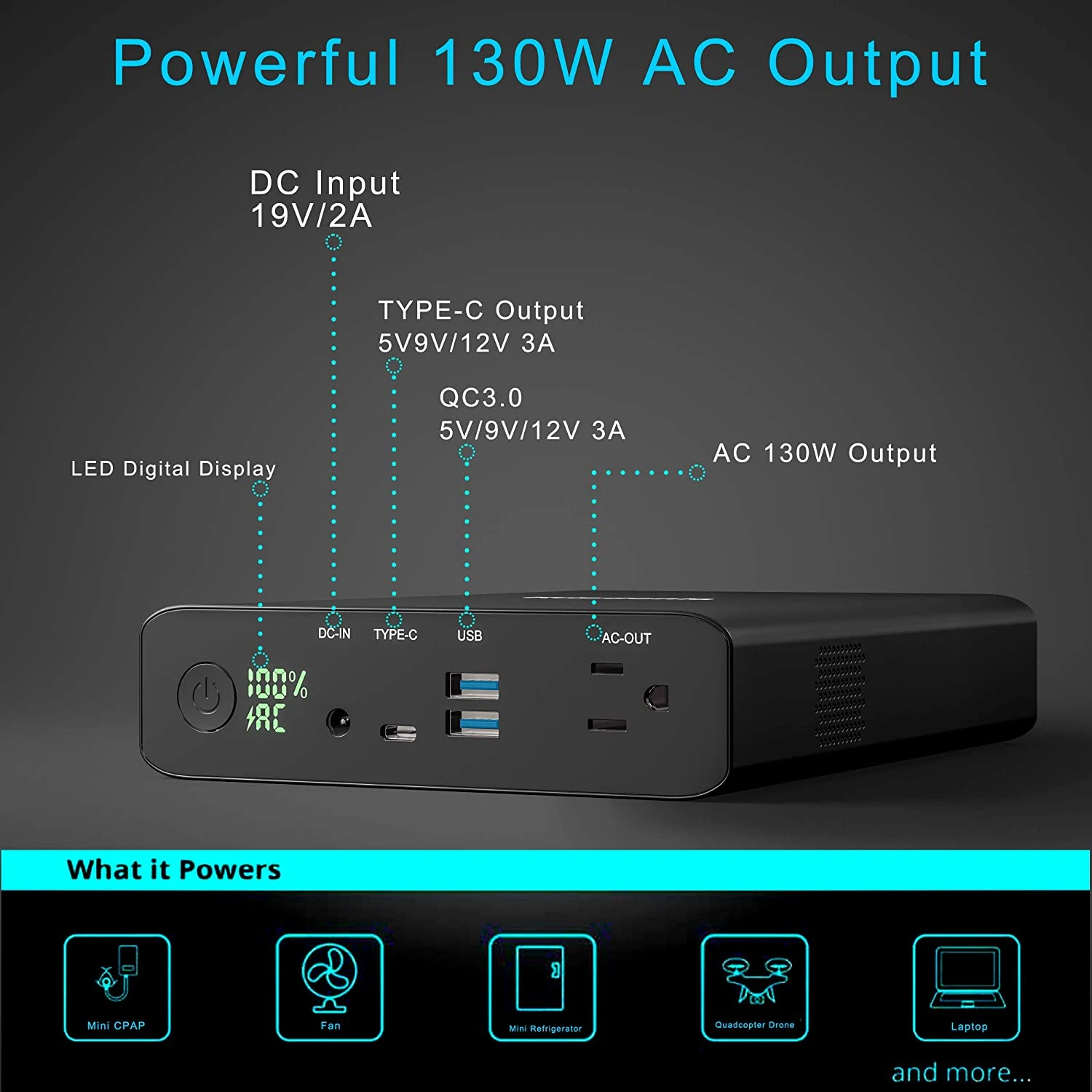 Sa puissance totale de 130 Watts, son port AC-OUT et sa grande capacité en fait un outil parfait pour recharger son PC Portable ⚡.