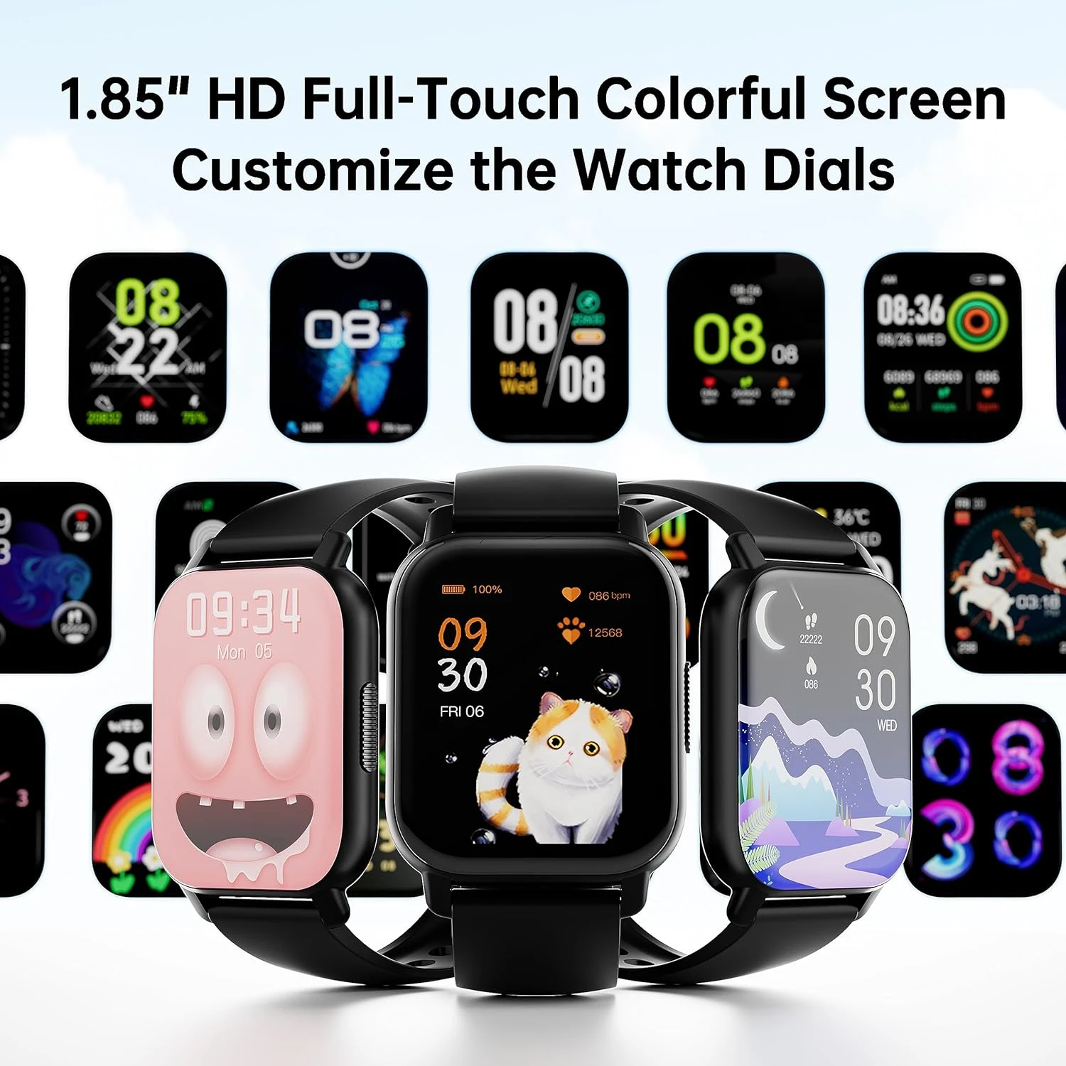 La montre est équipée d’un écran tactile couleur HD de 1,85 pouce, offrant une expérience utilisateur supérieure grâce à sa technologie tactile complète, son design esthétique et sa légèreté. Personnalisez votre montre avec deux bracelets interchangeables et de nombreux cadrans préinstallés, ou définissez vos photos préférées en fond d’écran.
