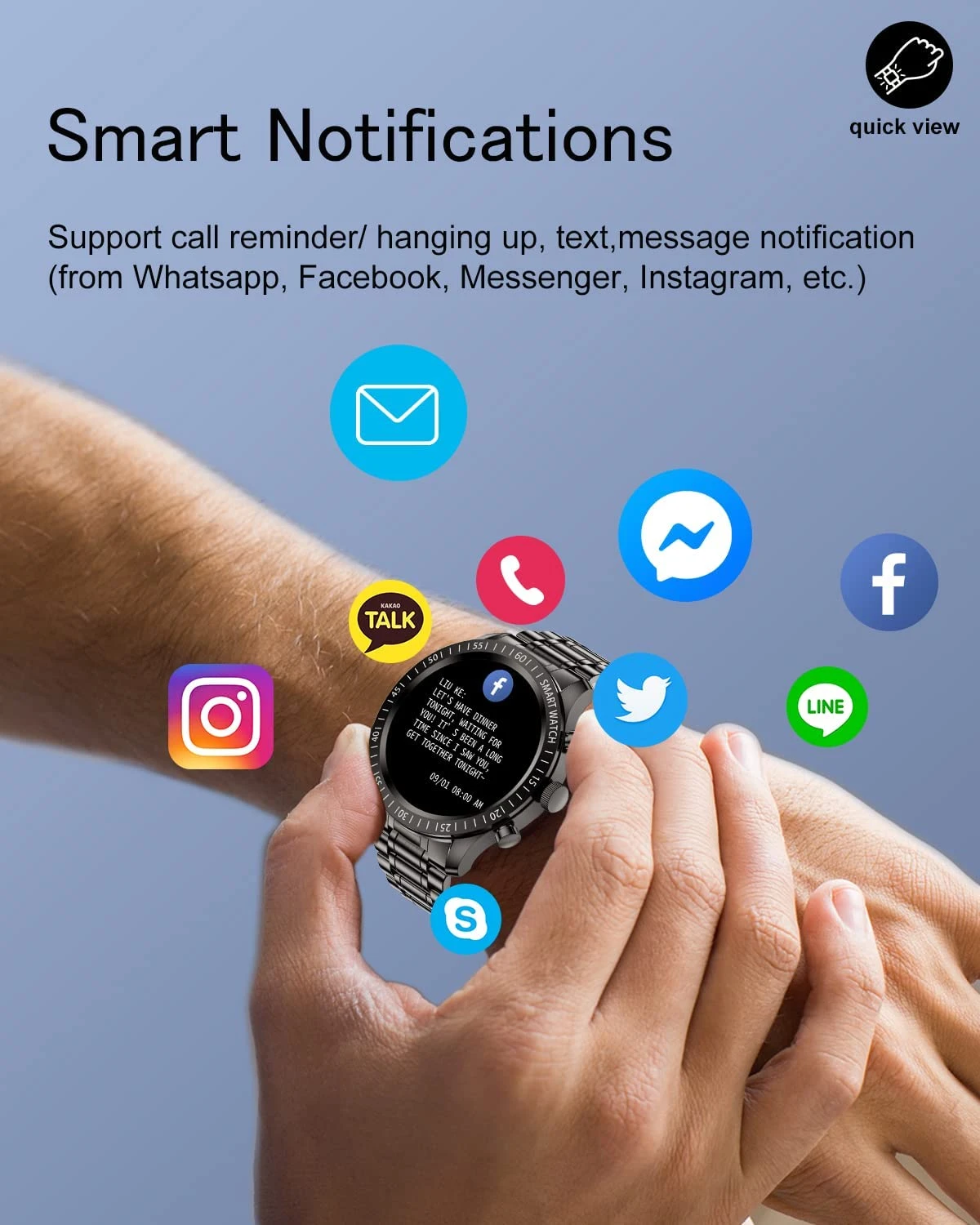 Notre montre connectée sport pour homme est conçue en Acier Inoxydable afin de lui donner un design élégant et de la rendre spécialement résistante aux coups et chutes. Son écran Full HD est fourni avec un film de protection évitant les rayures ❤️.