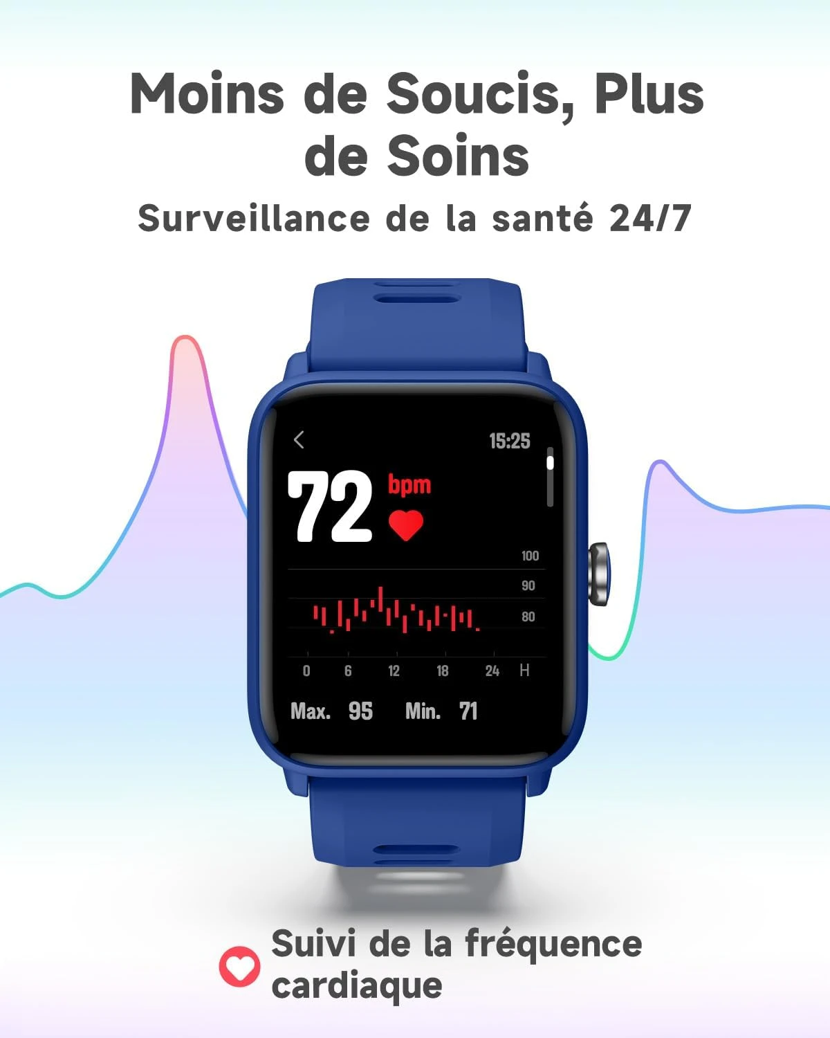 Pas besoin de smartphone ! La montre peut être utilisée directement sans application, mais en la connectant à une application, elle débloque encore plus de fonctionnalités. Une flexibilité parfaite pour s’adapter à vos préférences.