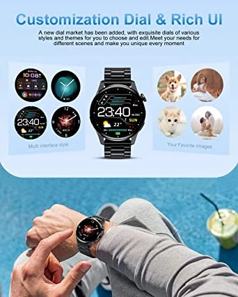 Dotée d’un écran tactile TFT HD de 1,32 pouce, cette montre vous offre une qualité d’image nette et brillante. Personnalisez son cadran selon votre style avec divers modèles proposés, et profitez de deux bracelets interchangeables (TPU et acier inoxydable) pour un confort et un style adapté à chaque occasion.