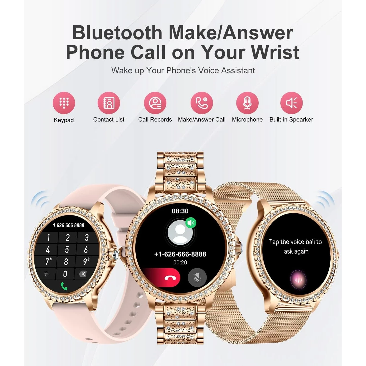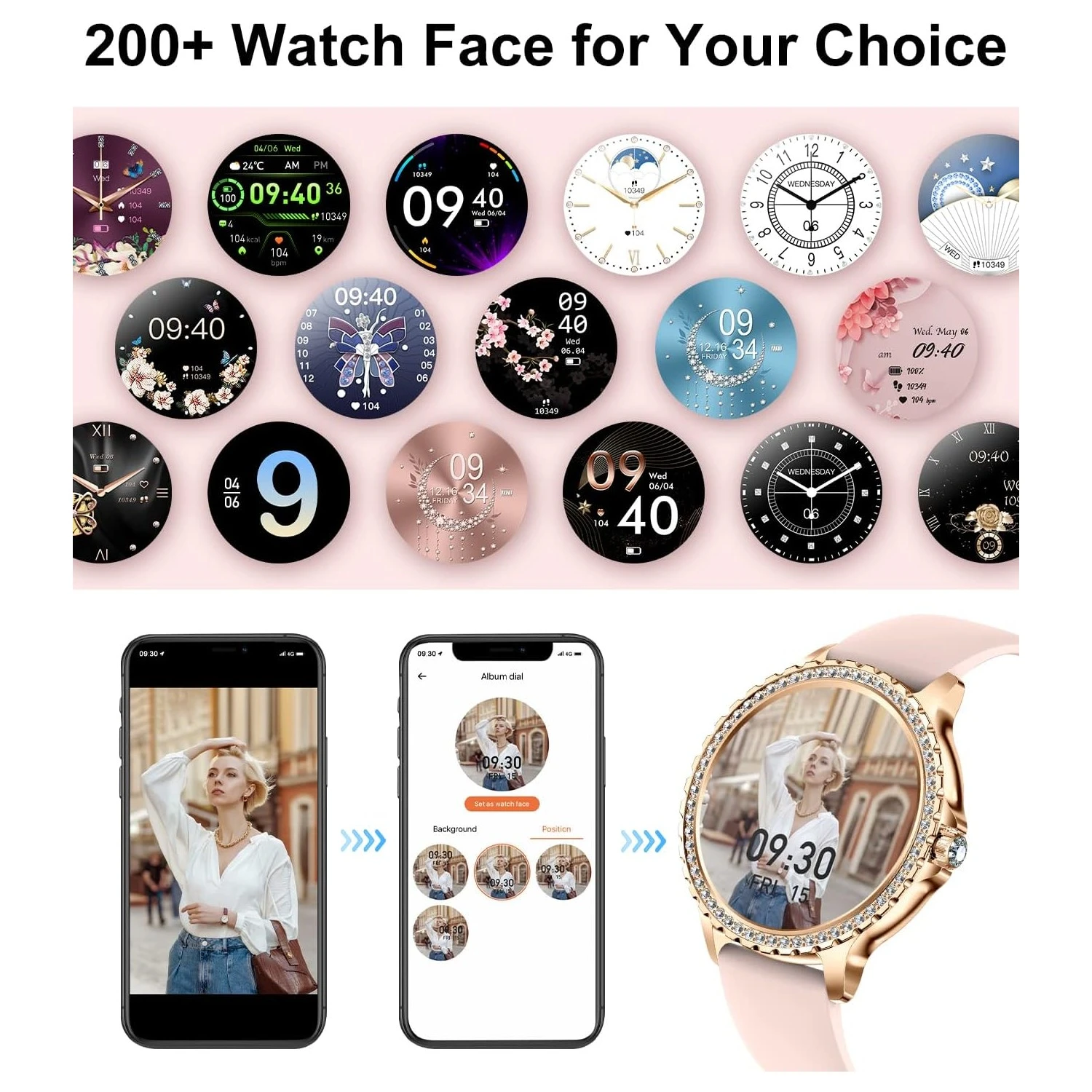 ⌚️ Votre montre, votre style : Dotée d’un écran rond de 1,32″ en or rose, notre montre offre une résolution de 360*360 pour une expérience visuelle optimale. Personnalisez-la en choisissant parmi une variété de cadrans gratuits ou en téléchargeant vos propres images. Que ce soit pour le travail, les loisirs ou le sport, notre montre connectée est le complément parfait à toutes vos tenues, accompagnée d’un bracelet en silicone gratuit.