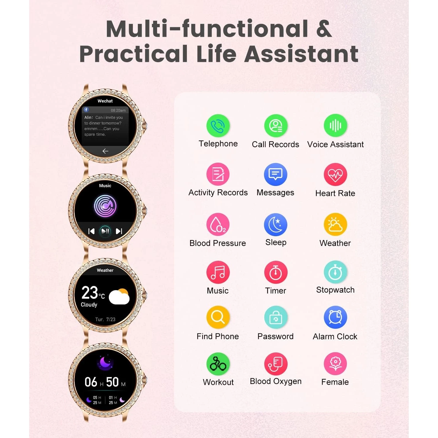 ✨Un compagnon utile : Équipée d’un haut-parleur hi-fi et d’un microphone, notre montre connectée vous permet de passer ou de recevoir des appels directement depuis votre poignet. Ne manquez jamais un appel ou un message grâce à sa synchronisation avec votre téléphone. Recevez également des notifications d’applications telles que WhatsApp, Facebook, Instagram et bien d’autres, restez ainsi informée en temps réel.