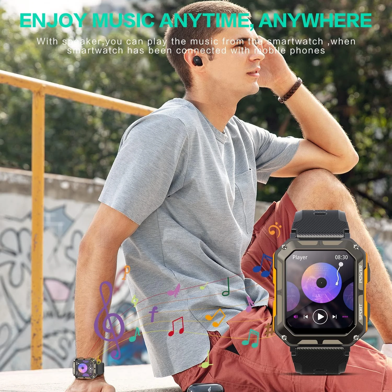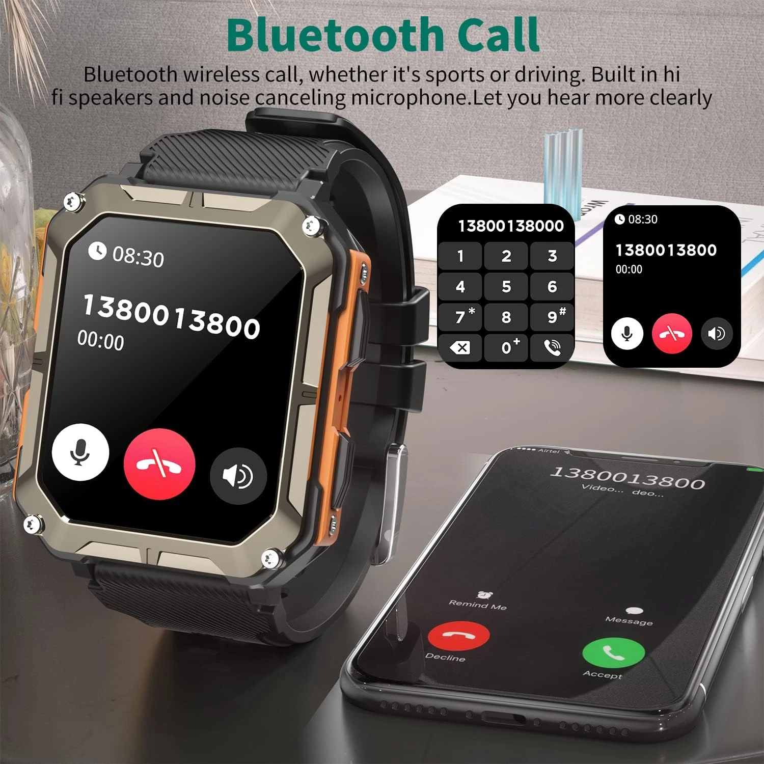 ⌚ Dotée d’un haut-parleur intégré, vous pouvez passer et répondre aux appels directement depuis votre poignet une fois que votre téléphone portable est connecté à la montre. Vous ne manquerez jamais un appel important, même au milieu d’une journée chargée sur le chantier. De plus, notre montre peut relayer les notifications provenant d’applications sociales telles que Facebook, WhatsApp, et bien d’autres, assurant ainsi que vous restiez informé en temps réel.