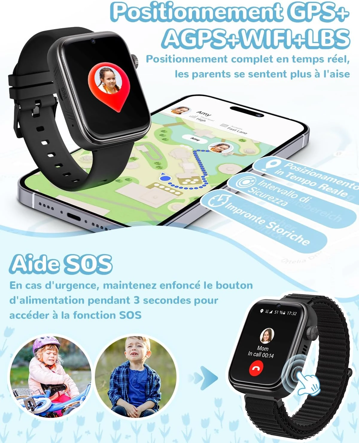 🌍 Positionnement GPS omnidirectionnel et SOS pour une sécurité optimale : Avec sa fonction de positionnement GPS, AGPS, WiFi et LBS, vous pouvez suivre l’emplacement de votre enfant à tout moment. En cas d’urgence, un appui de 3 secondes sur le bouton SOS enverra automatiquement un signal d’alerte et partagera la localisation pour une intervention rapide.