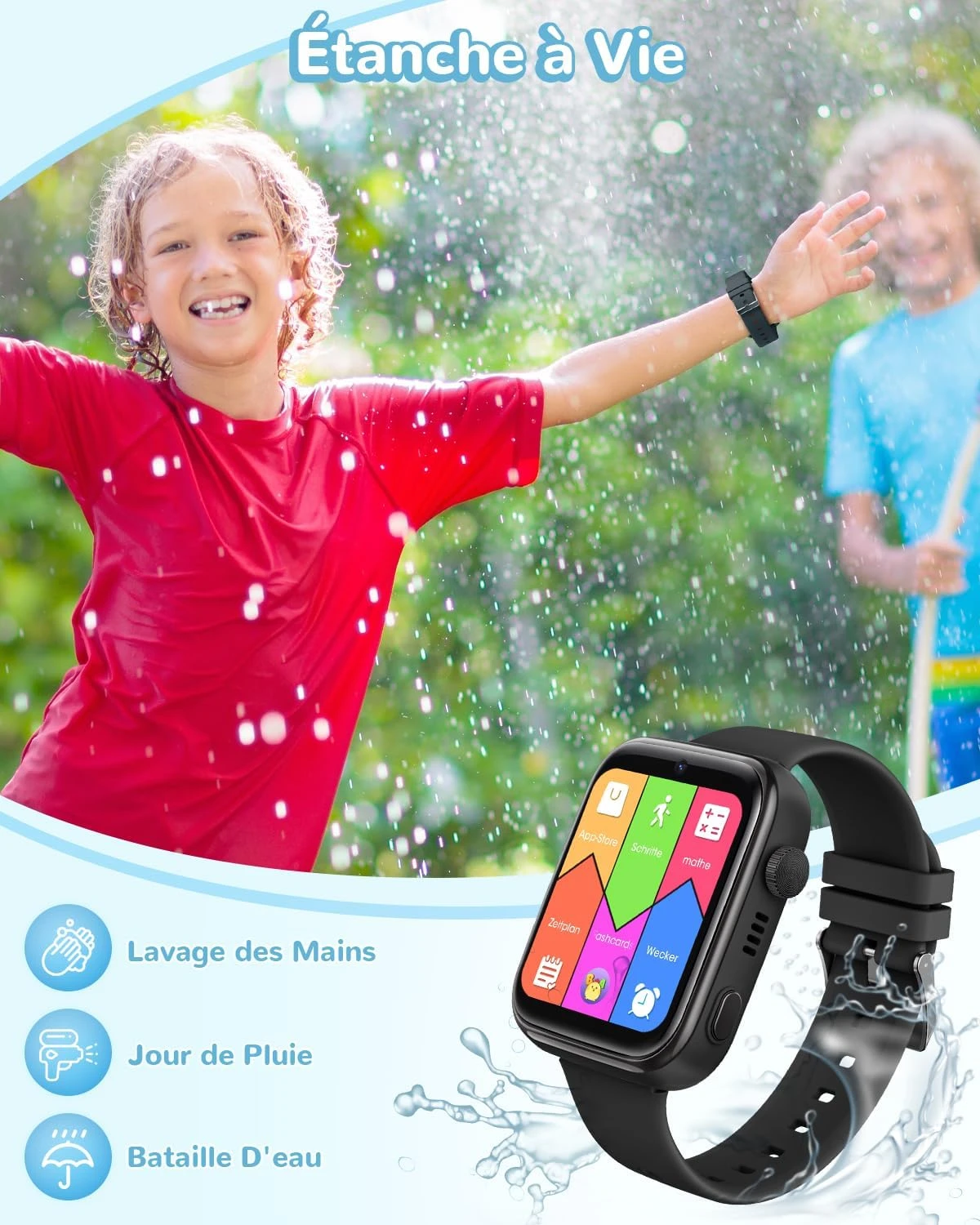 💦 Étanche IP67 pour toutes les aventures : Conçue pour résister à l’eau, cette montre est étanche IP67, permettant aux enfants de la porter sans souci lors de leurs activités en plein air, qu’il s’agisse de jouer sous la pluie ou de faire du sport.