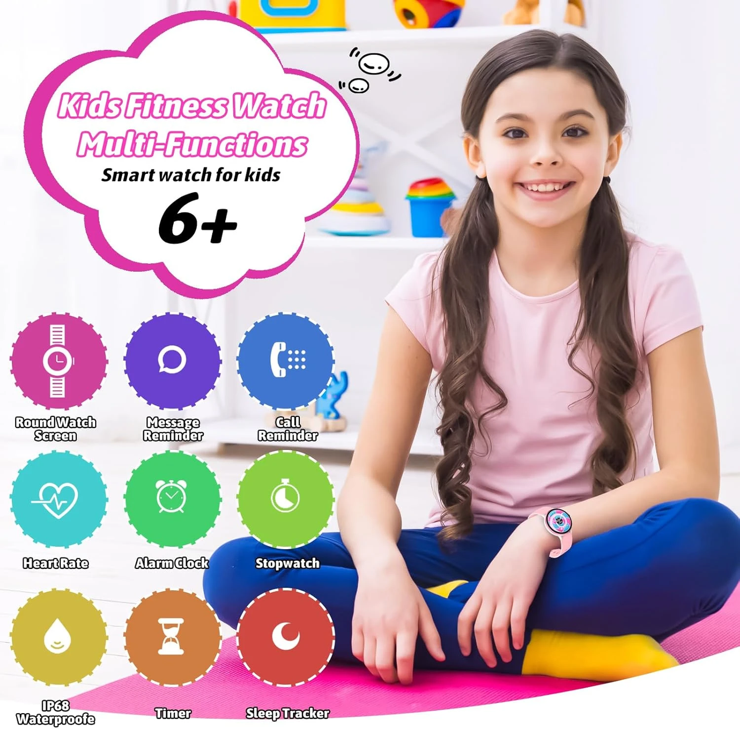 Montre Intelligente Rose avec Suivi de l’Activité Physique (6 à 16 ans)