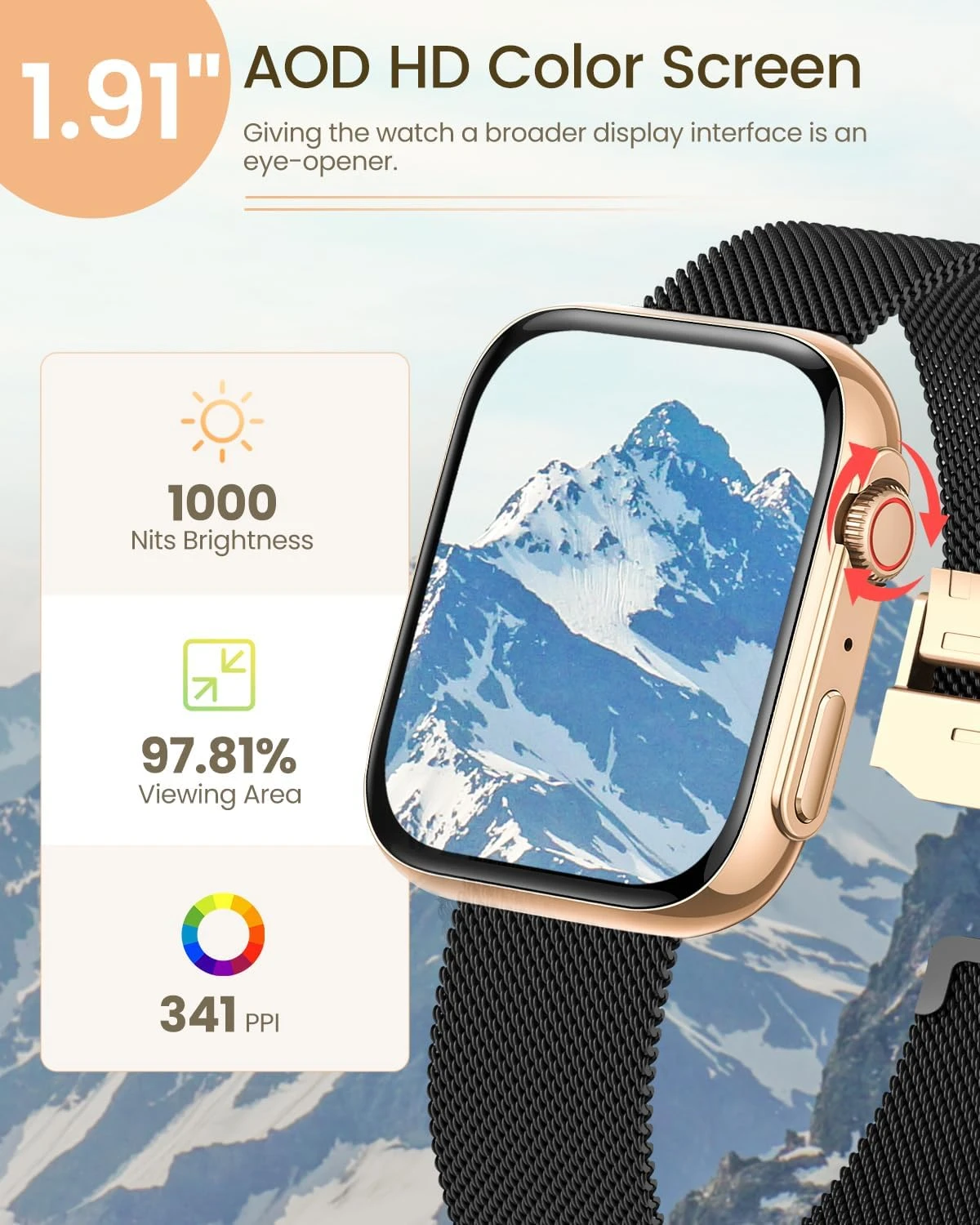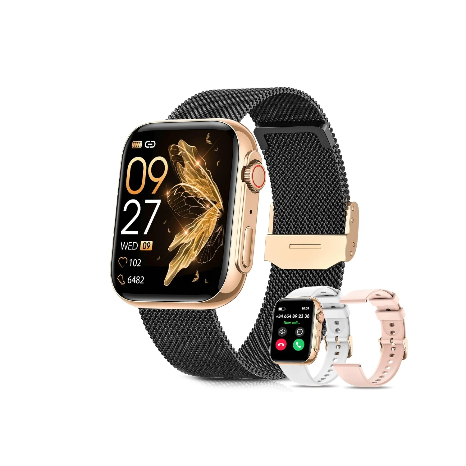 Notre montre est fournie avec trois bracelets interchangeables : un bracelet en acier doré noir pour une touche d’élégance, et deux bracelets en silicone confortables et respirants pour le sport et la vie quotidienne. Grâce à la conception d’installation rapide, changez de style à tout moment. Avec plus de 250 UI en ligne et la possibilité de personnaliser le cadran avec vos photos préférées, exprimez votre personnalité à chaque instant.