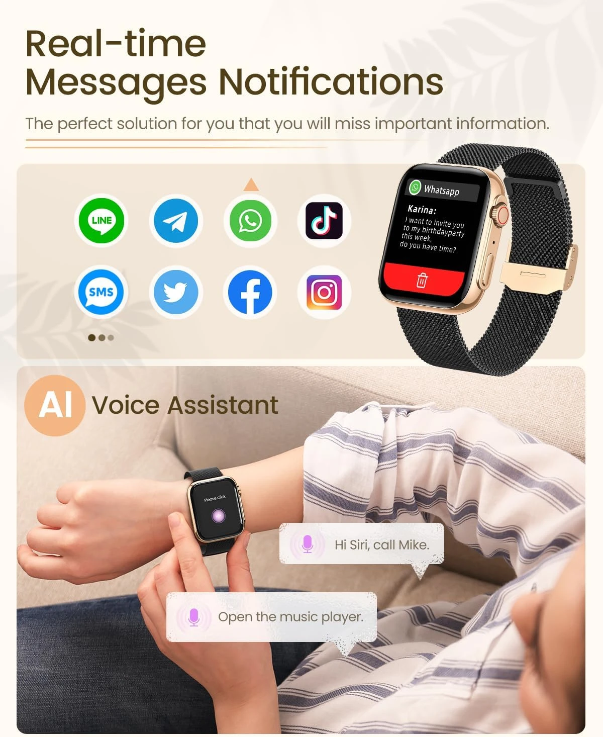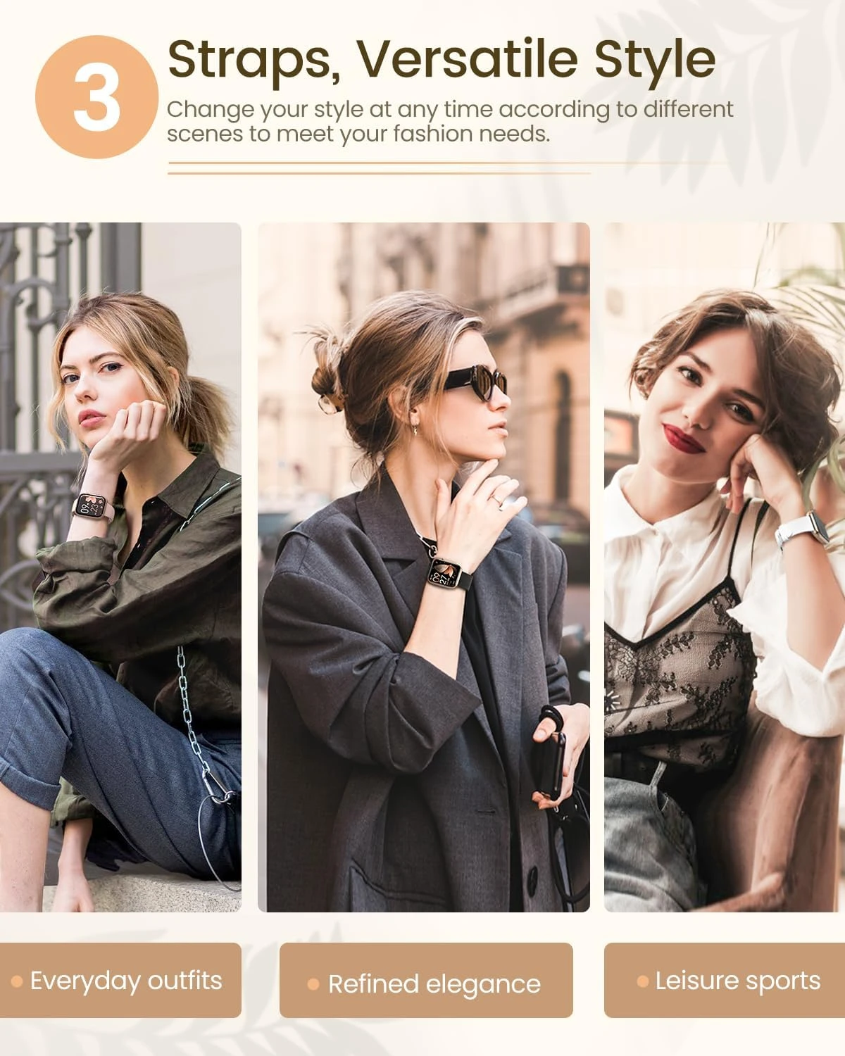 Découvrez notre Montre Connectée Femme, conçue pour allier élégance, performance et commodité. Idéale pour les femmes modernes, cette montre vous accompagnera au quotidien avec ses multiples fonctionnalités et son design raffiné. 🌟