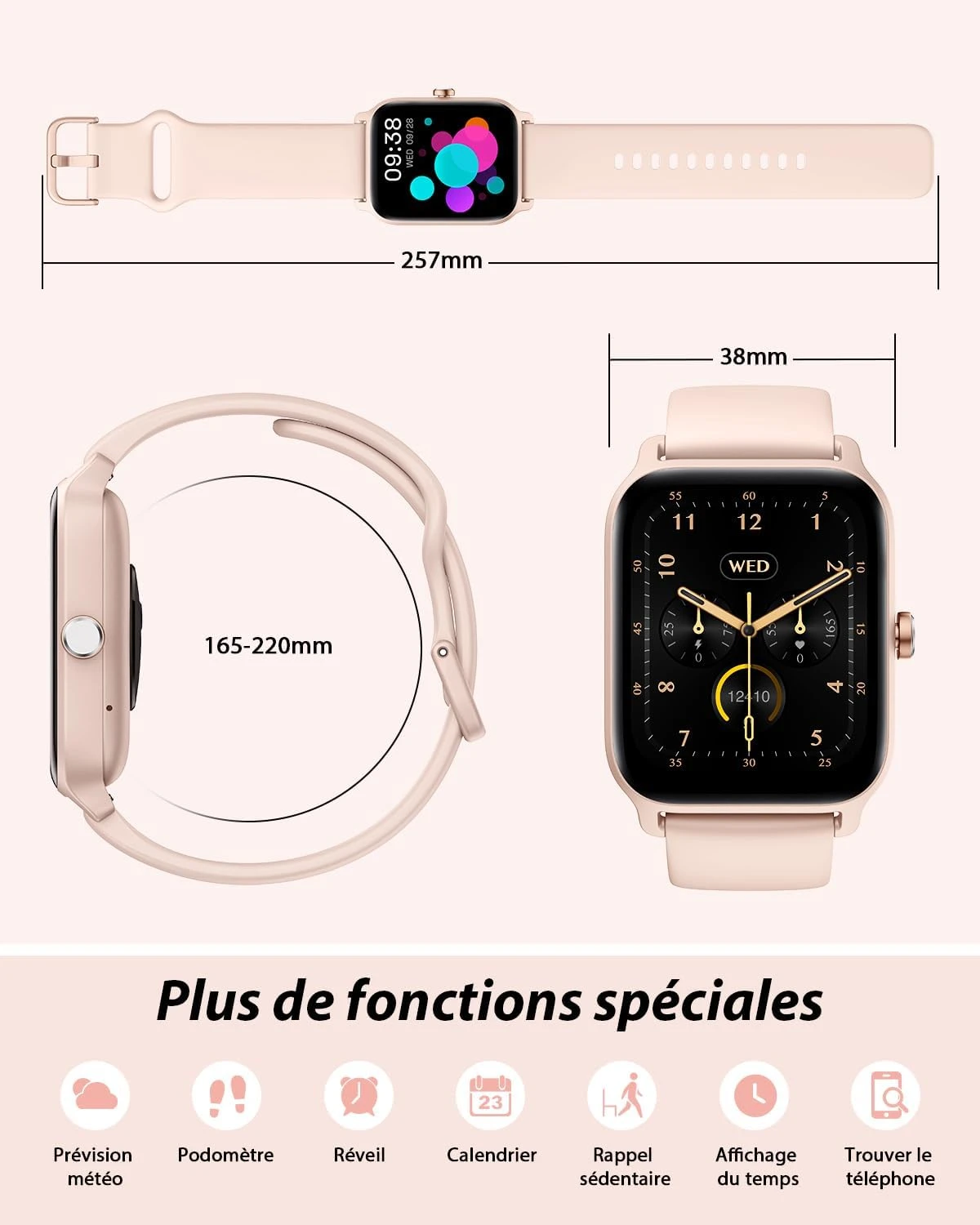 💬 Alexa intégrée & Notification SMS/APP : Restez informée avec les notifications en temps réel de vos SMS et applications comme WhatsApp et Facebook. Avec Alexa intégrée, utilisez votre voix pour écouter de la musique, consulter la météo ou régler des alarmes, tout en gardant les mains libres pour vos activités quotidiennes.