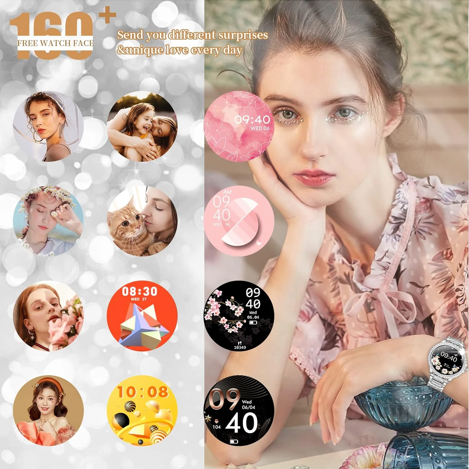 Avec notre montre connectée femme au bracelet en acier, la vie quotidienne devient plus facile, plus élégante et plus connectée que jamais. Que vous suiviez votre santé, restiez en contact avec vos proches ou personnalisiez votre style, cette montre est là pour vous accompagner à chaque étape de votre journée, avec style et sophistication.