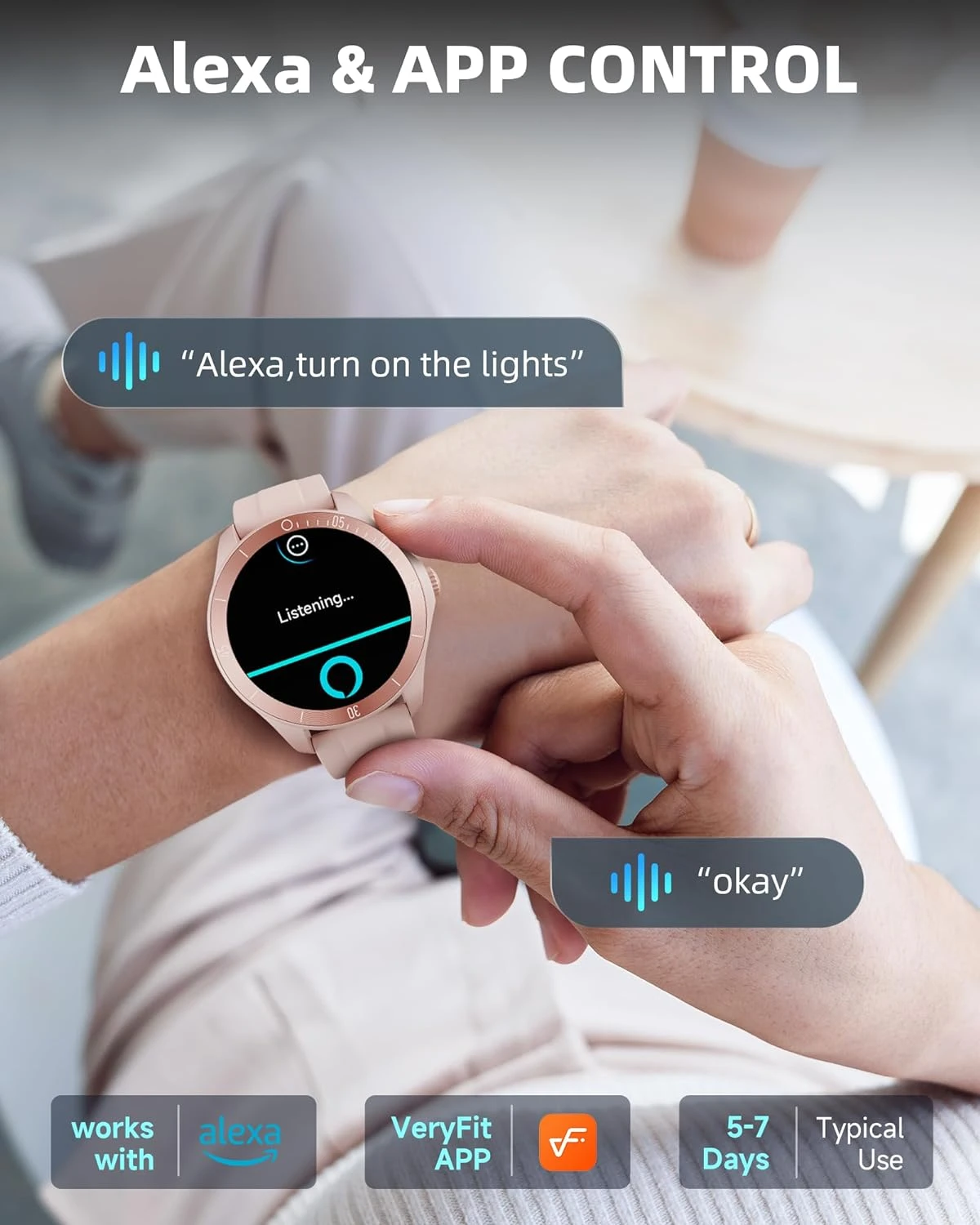 Avec un haut-parleur et un microphone intégrés, vous pouvez répondre aux appels et donner des commandes vocales à Alexa sans utiliser votre téléphone. Posez des questions ou contrôlez vos appareils compatibles avec Alexa, même en faisant de l’exercice ou en conduisant. Cette montre connectée synchronise également automatiquement les SMS et les messages des applications comme Facebook, WhatsApp et Gmail, vous offrant une vie intelligente et connectée.