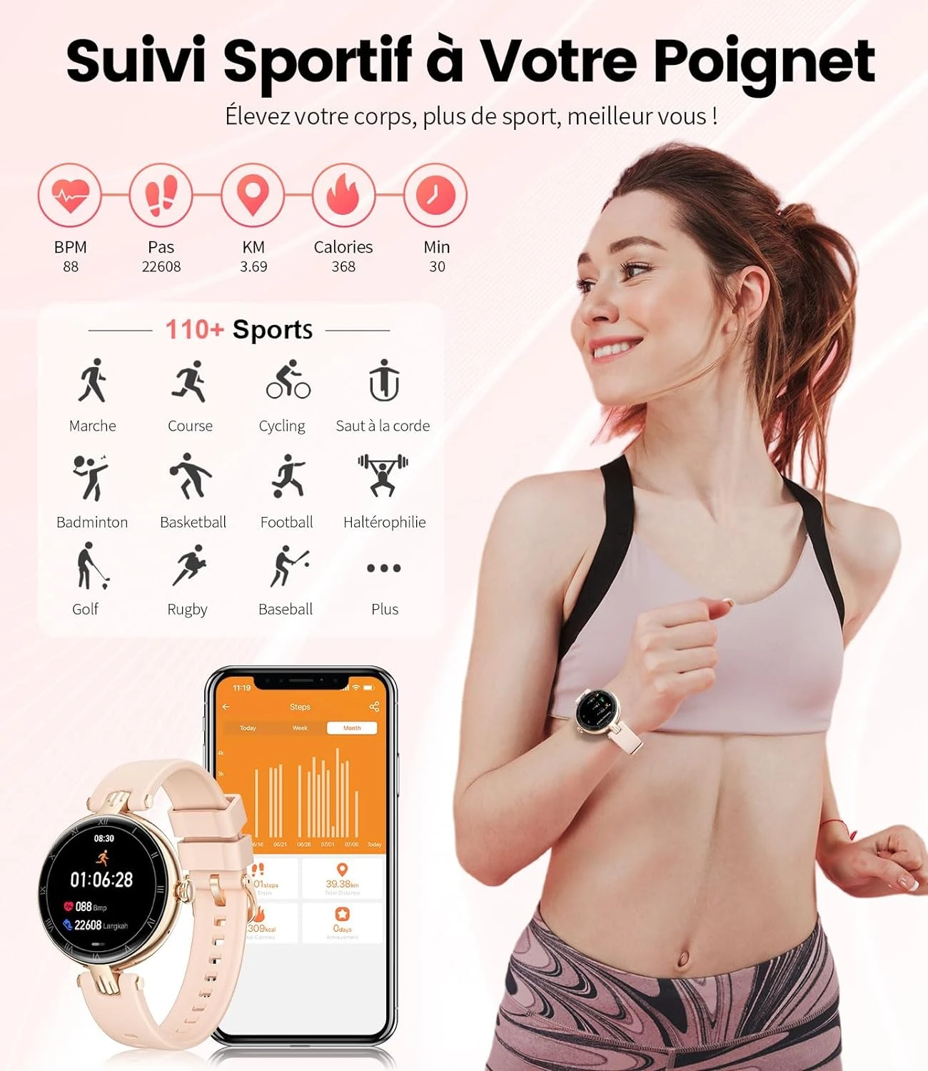| Catégorie : Montre connectée / Montre connectée sport femme | |