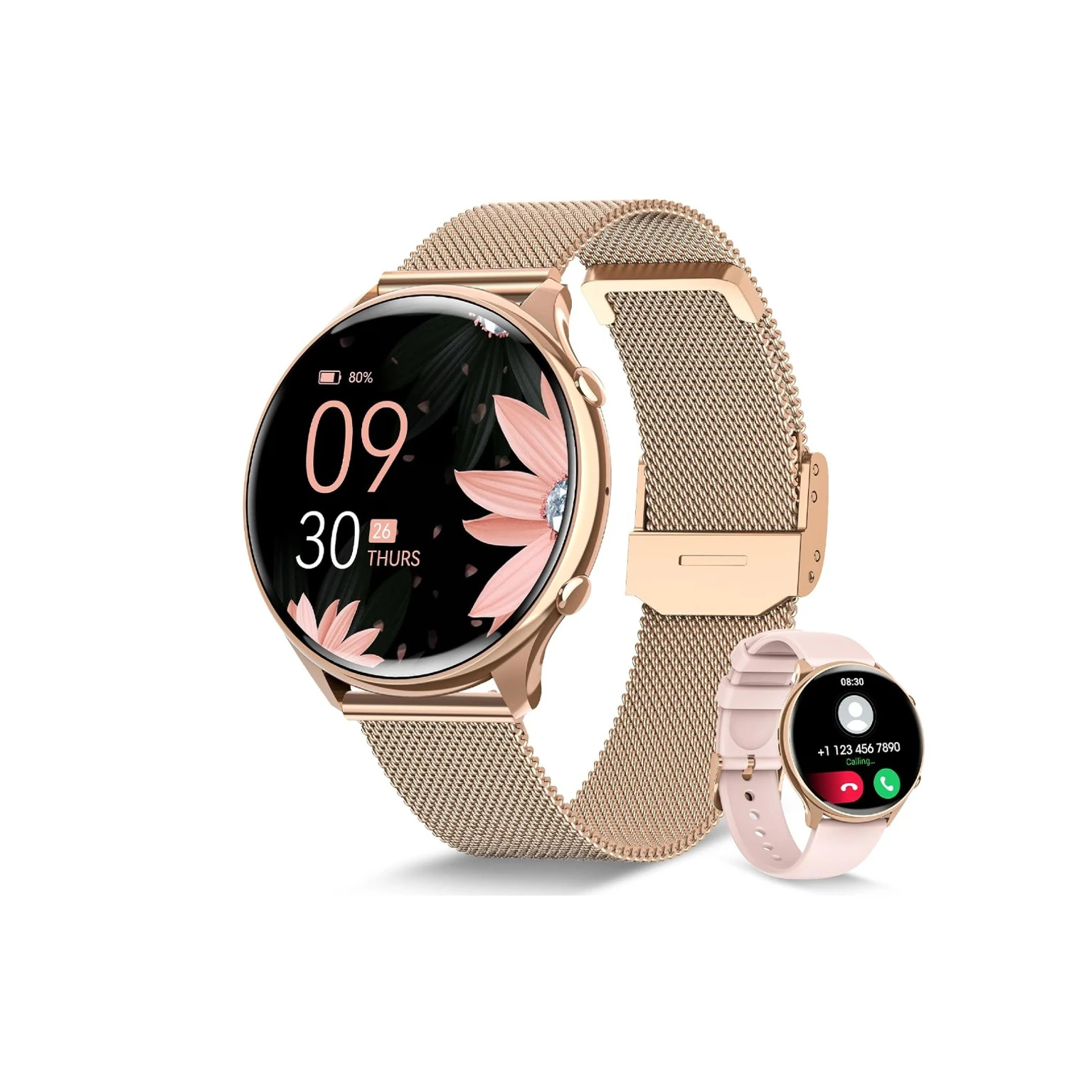 🌸 Personnalisée pour les femmes : Notre montre connectée arbore un écran tactile complet en verre incurvé 2,5D avec une résolution ultra haute de 360 x 360 pixels, assurant une vision claire et agréable. Légère avec seulement 39 g, elle est parfaite pour être portée toute la journée. Livrée avec un bracelet milanais exquis et un bracelet en silicone souple, elle s’adapte à toutes les occasions, que ce soit pour une journée de travail ou une soirée élégante.