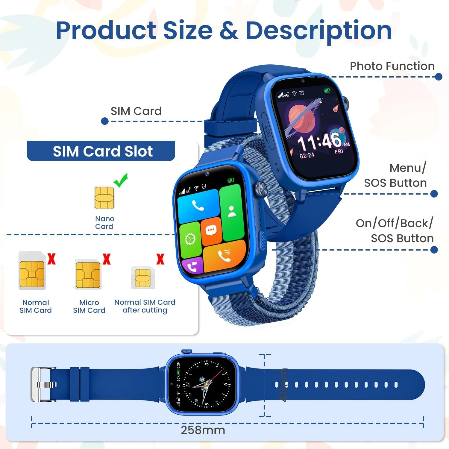 📞 Communication simplifiée et sécurisée : En insérant une carte SIM 4G, votre enfant pourra passer et recevoir des appels et des appels vidéo en toute simplicité. Jusqu’à 15 contacts peuvent être ajoutés pour permettre à votre enfant de rester en contact avec la famille et les amis. En cas d’urgence, la fonction SOS déclenche une alerte en appelant trois numéros programmés, l’assurance de toujours avoir un secours à portée de main.
