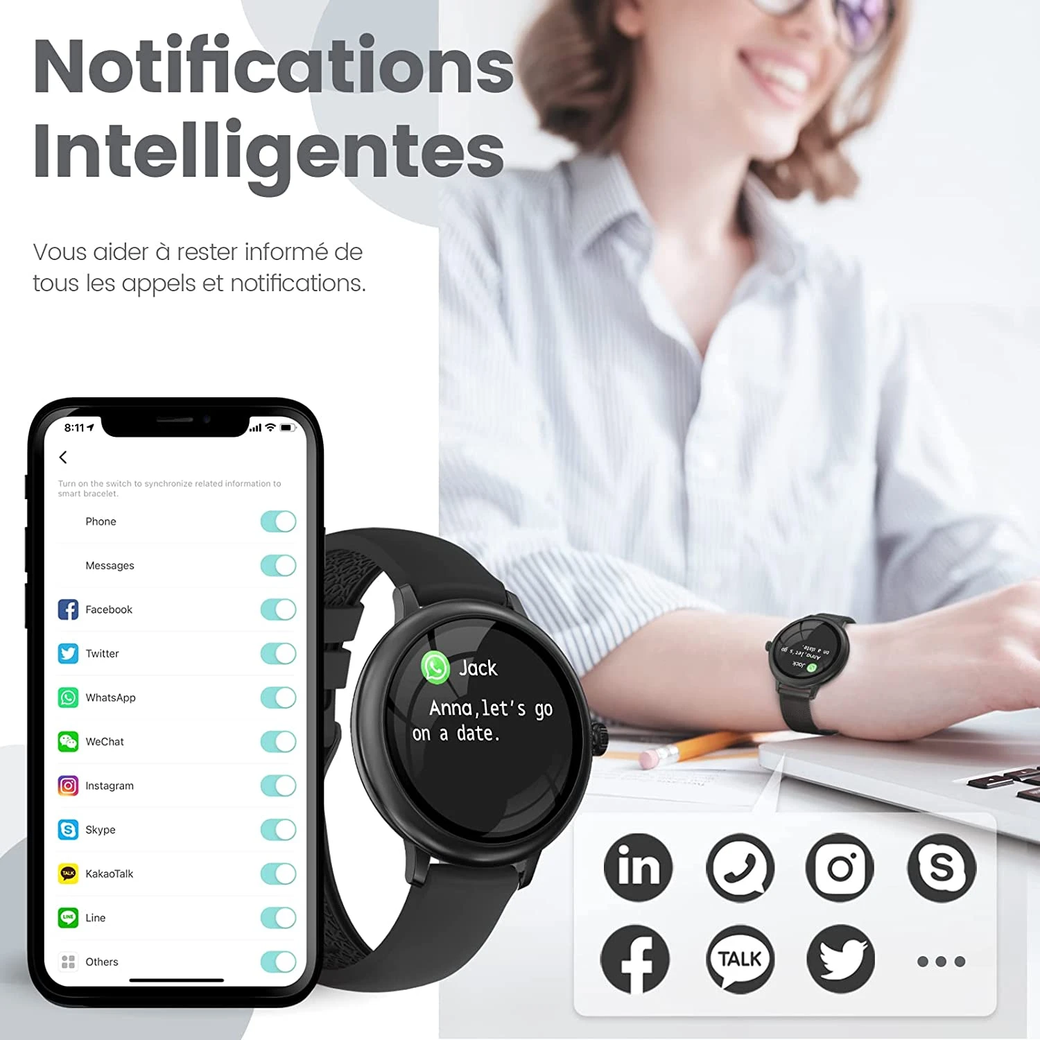 Notre Montre intelligente pour femmes a une conception stylistique affinée, allurée et charmante lui permettant de s’adapter à toutes vos tenues et utilisations ❤️. Elle a des capteurs mesurant des données correspondantes à votre corps aidant à prendre soin de sa santé, de son activité physique ou de son bien-être de manière plus générale. Une équipe est mise à votre disposition via notre onglet contact afin de répondre sous 24 heures à chacune de vos questions / demandes ✅.